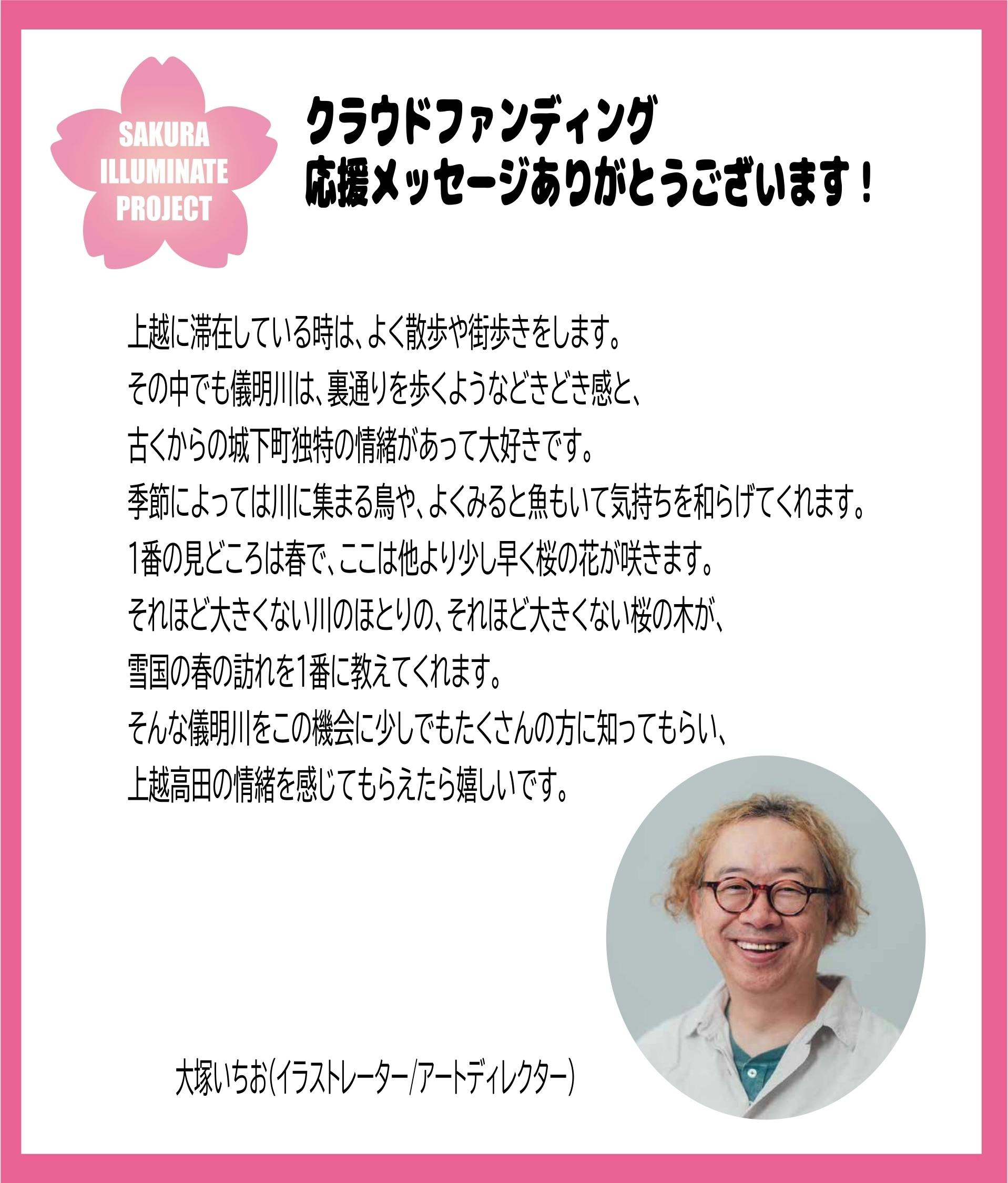 さて、本日は当プロジェクトに「みいつけた!」や上越妙高駅お出迎えキャラクター「ウェルモ」でおなじみのイラストレーターの大塚いちお氏より応援メッセージを頂きましたのでご紹介したいと思います。