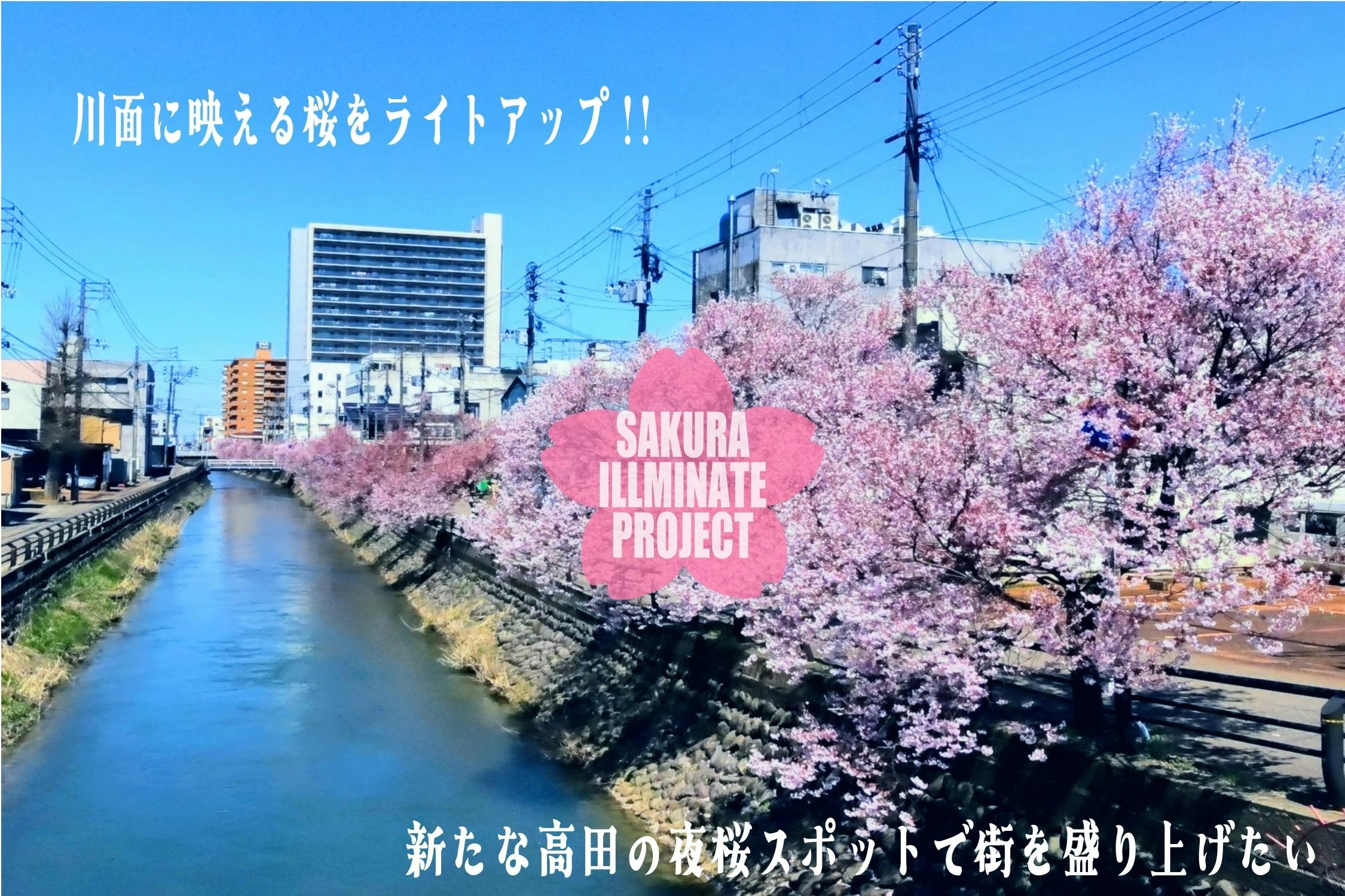 川面に映える桜をライトアップ!~新たな高田の夜桜スポットで街を盛り上げたい~クラウドファンディングは2月15日(土)まで受付中です。皆様と一緒にこの夢を実現すべく、ご支援、応援をどうぞよろしくお願いいたします!