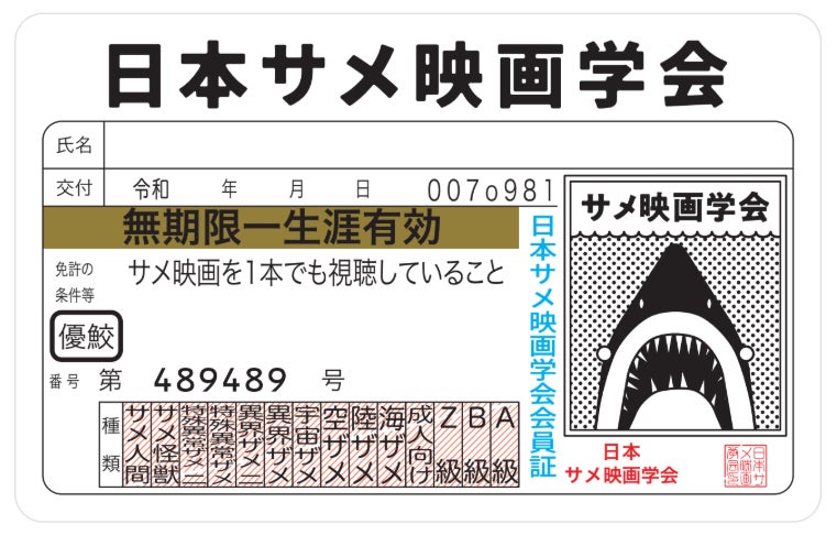 そして!「日本サメ映画学会会員証」の数量限定で販売いたします!会員であることを証明する際にはこれ以上ないアイテムです。ただしそんな機会があるかは分かりません。
