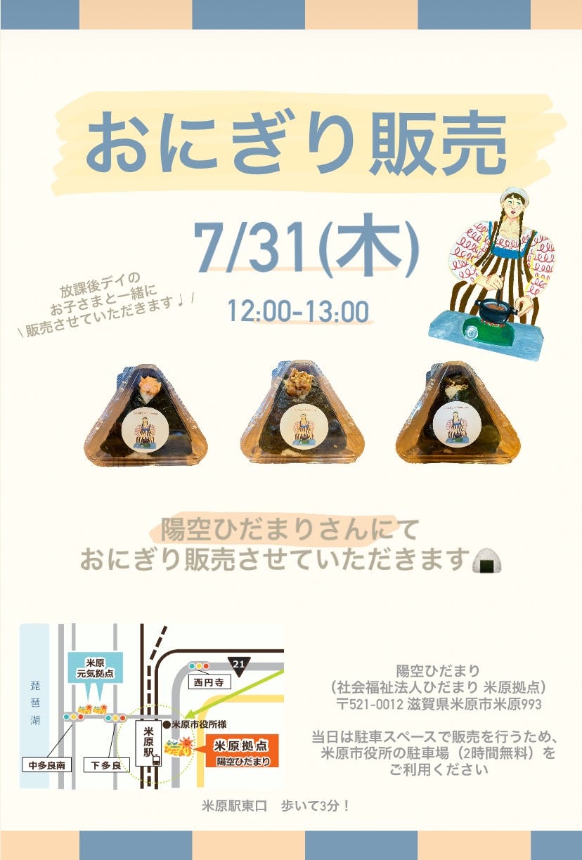 陽空ひだまり(放課後デイサービス)さんにておにぎり販売させていただきます。