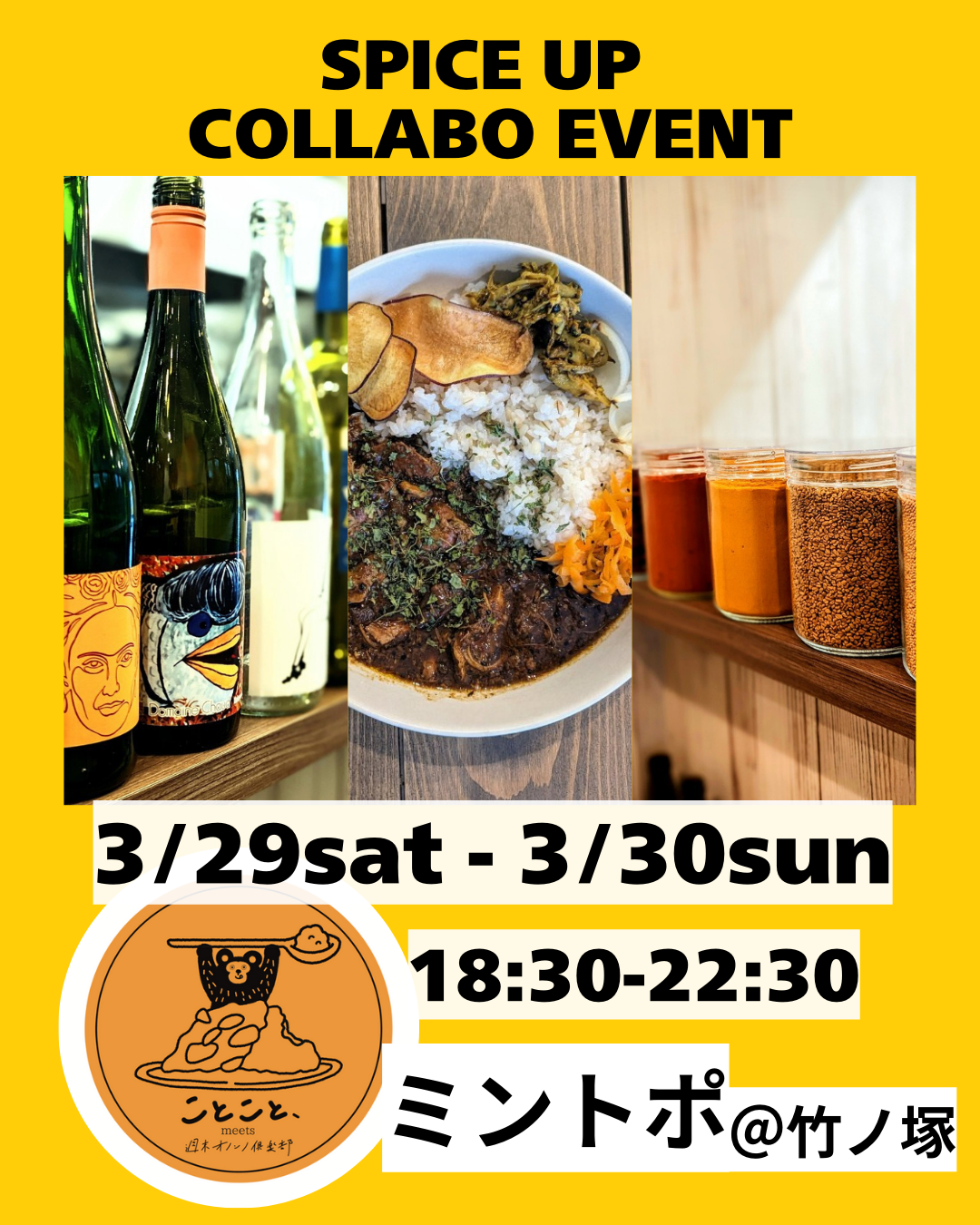 \\”今週末”は「週末オノンノ倶楽部」とコラボ開催//台湾料理をきっかけに「オノンノ」な空間を作り出している、「週末オノンノ倶楽部」とコラボイベントです!「食」を通じた空間作りをしている同世代とのコラボにワクワクしております私からは「ルーローファンカレー」をお持ちいたします。台湾の料理である魯肉飯をもとにスパイスとお合わせました。みなさんのご来店お待ちしておりますスパイスカレーテイクアウトOKです!コラボロゴかわいすぎるやろ〜!ーことこと、×オノンノ詳細ー日程:3/29(土)– 3/30(日)時間: PM18:30ー22:30(l.o22:00)場所:ミントポ 竹ノ塚駅から徒歩1分(〒121-0813 東京都足立区竹の塚6丁目5 1F)「ミントポ」インスタ⇩https://instagram.com/mintopo_takenotsuka/「週末オノンノ倶楽部」インスタ⇩https://www.instagram.com/ononno.weekendclub?utm_source=ig_web_button_share_sheet&igsh=ZDNlZDc0MzIxNw==「Spice up Restaurantことこと、」インスタ⇩https://www.instagram.com/cotokoto_curry_cfa/