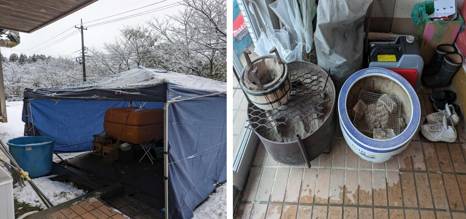 大きな被害の中ですが、一つ、大切な気づきがありました。インフラが被害を受けたことでライフラインが途絶え、日常生活をすごすことが困難になった中、私たちの工場がある集落では炭を使って暖を取ることができました。火鉢を使い、鍋に雪を入れて溶かし、煮沸しながら雑用水を確保することができましたが、生活のなかでは、飲料水の確保ができないことが最も困難で最も大変なことでした。私たちの集落では、電気を使って井戸水を汲み上げ浄水し、飲料水として利用していましたが、水源はあっても停電により飲み水が確保できない状況に陥ってしまったのです。