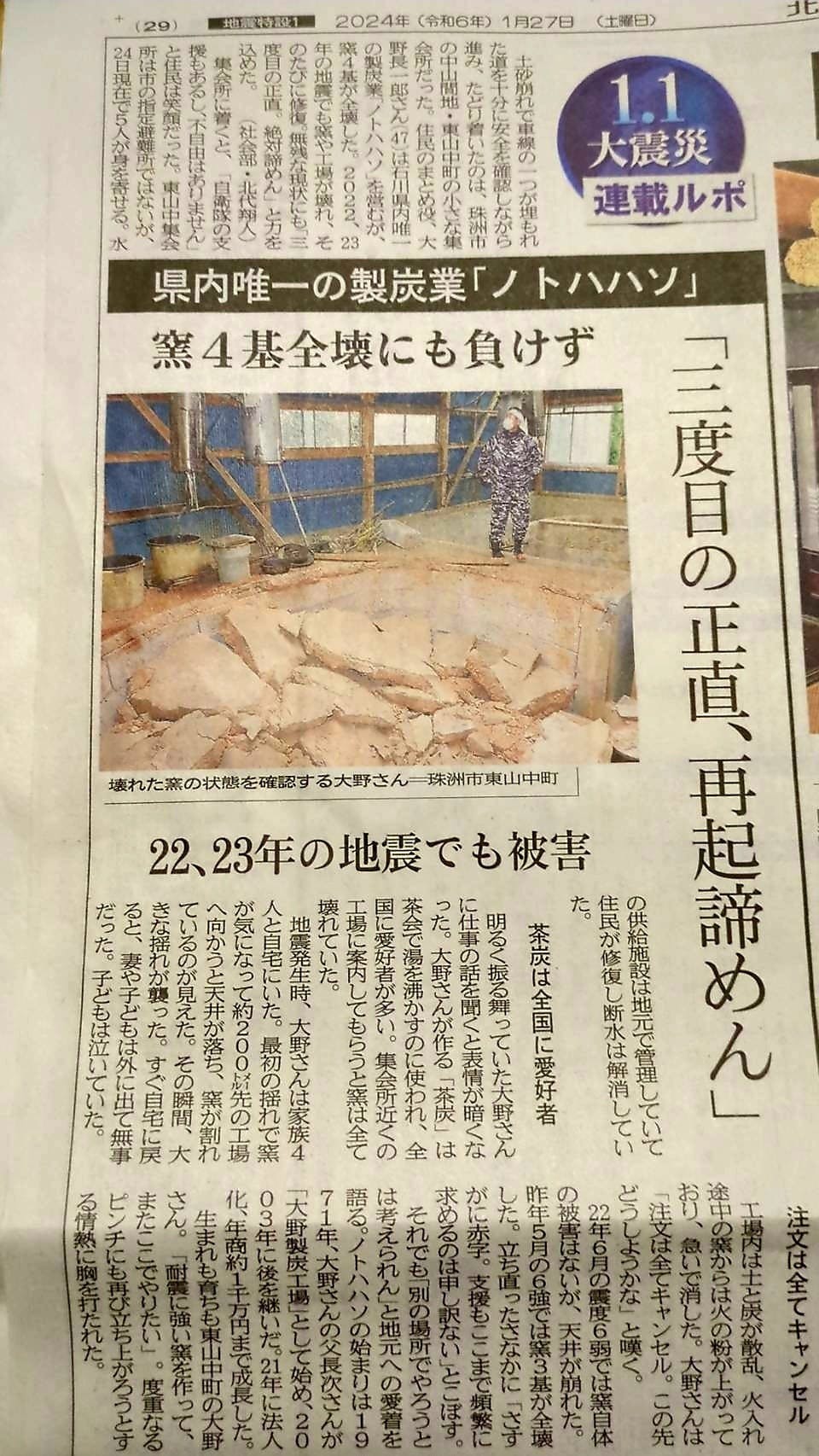 昨年、2024年1月27日北國新聞に載せていただいた記事です。