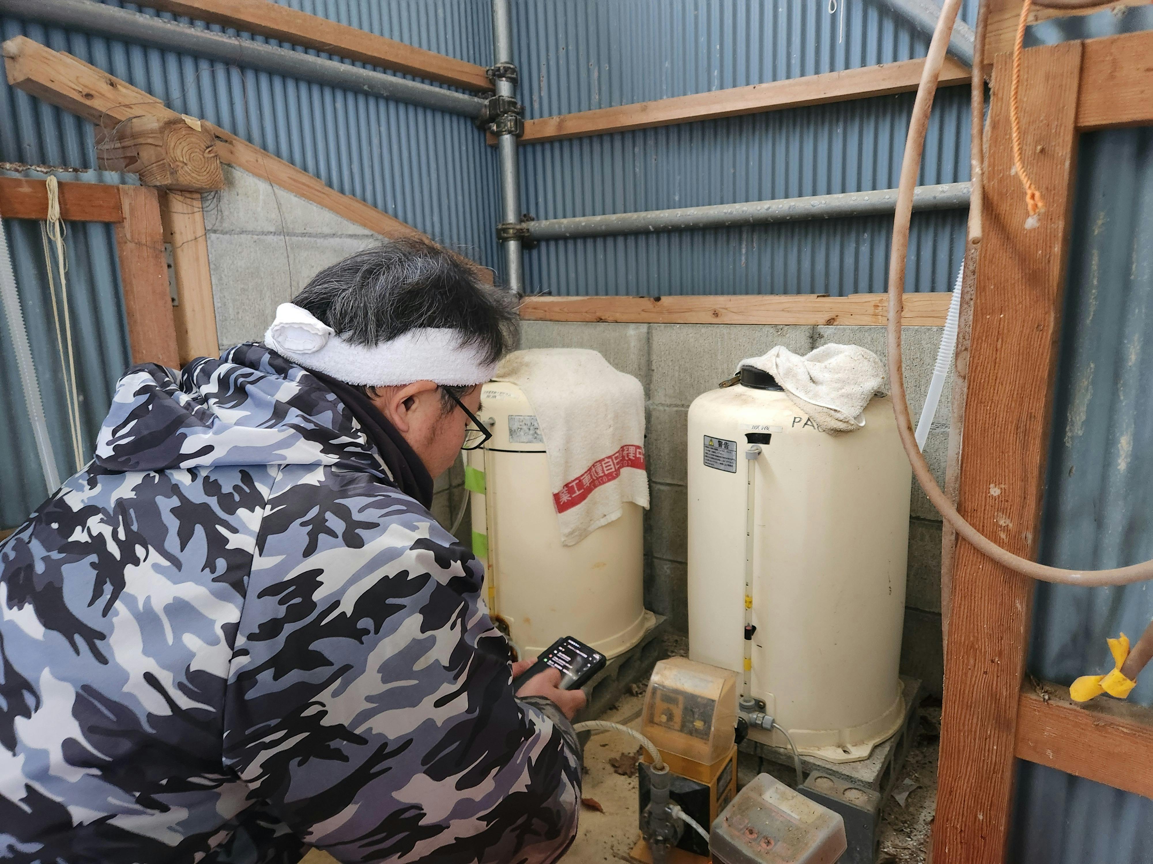 水組合を組織し、配管業に永年従事されてきた住民が管理を担ってくださっていましたが、数年前からその管理を引き継ぎ、現在も指導を受けながら、塩素濃度のチェック、メーターの見回り、水道料金の集金の実務を、炭やきの傍ら担っています。