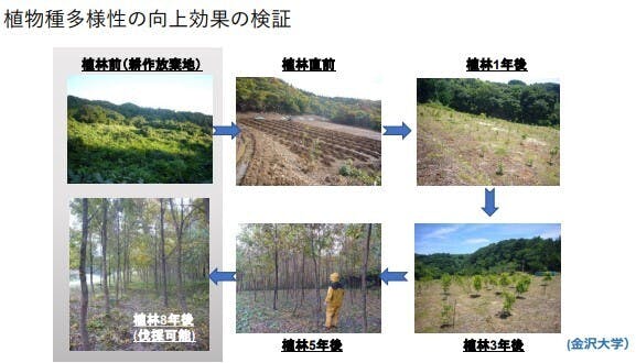 弊社では、2004年からクヌギの植林を続けており、現在は、約2.3ha 約7,000本のクヌギ林を所有しています。ここでの私たちの炭づくりが生物多様性に寄与することが認められ、2023年に弊社のクヌギ植林地が環境省の自然共生サイトに認定されました。また、OECM(Other Effective area-based Conservation Measures)として国際データベースにも登録されています。※弊社の植林地の登録情報は、認定サイト一覧(2023年前期)から、「中部」→「石川」を選択下さい。