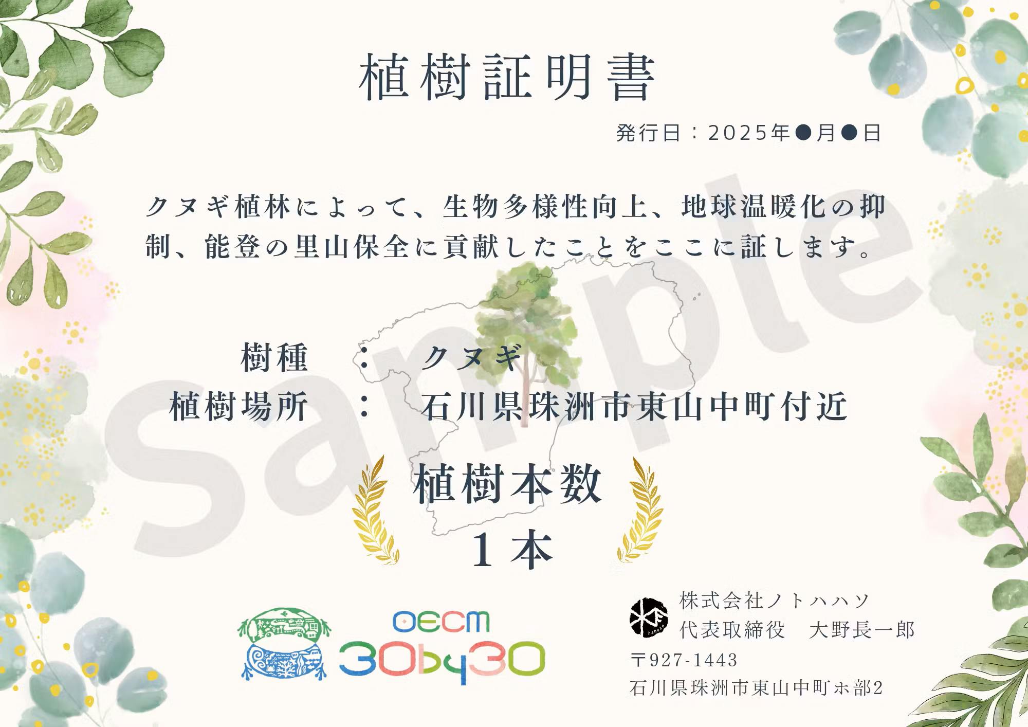 なお、1万円以上の応援プランには、お礼や活動報告のほかに、「植樹証明書」の送付を予定しております。※3,000円の返礼品には含まれておりません。
