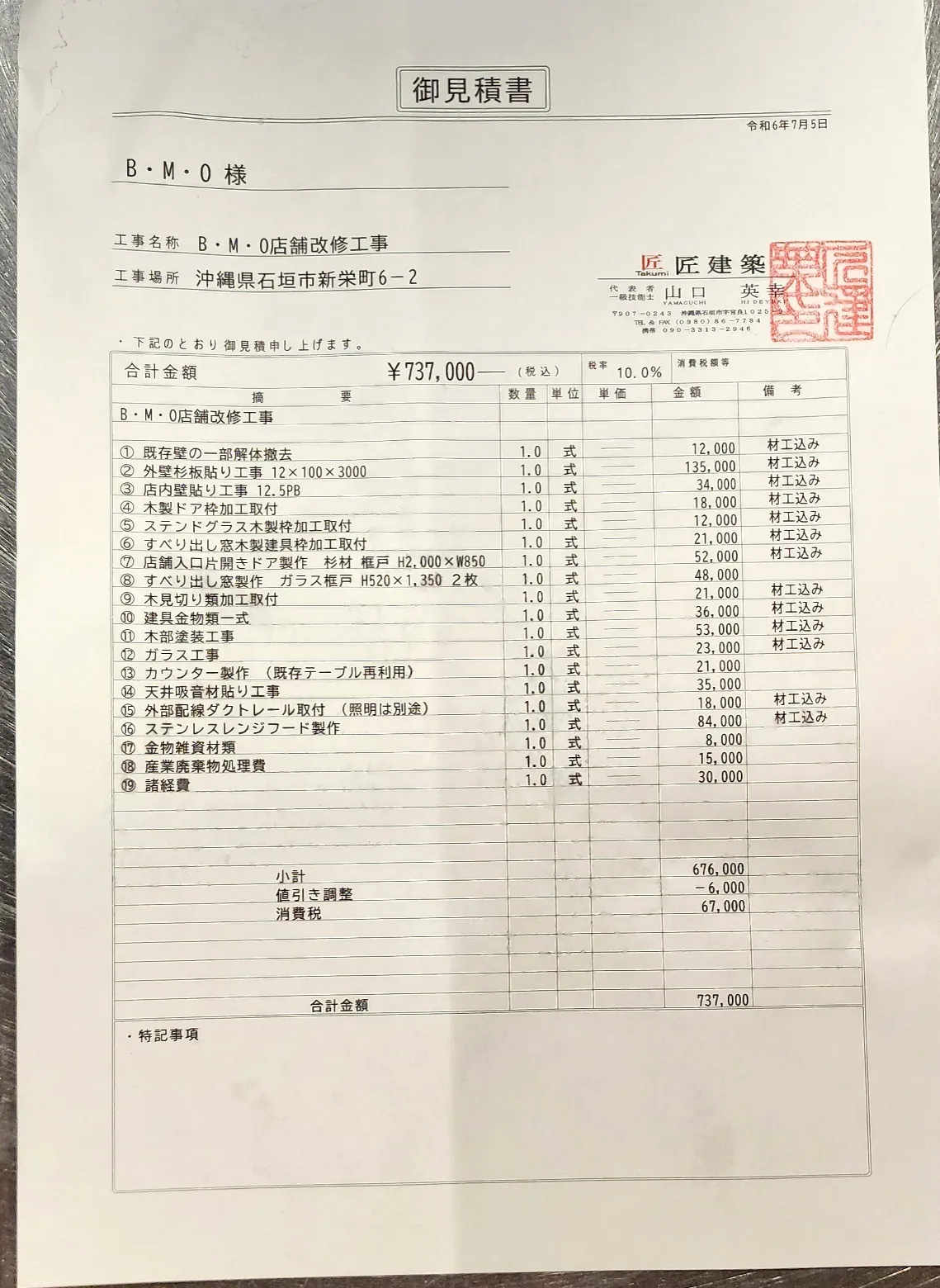 石垣市で地産地消のイタリア郷土料理店を運営しており、今月の27日で開業から一年を迎えます。私たちは地域の食材を活かした料理を提供し、地元の皆様に愛されるお店を目指しています。しかし、開業以来、様々なアクシデントがあり、その中でも特に店の入り口の問題が私たちの課題となっています。