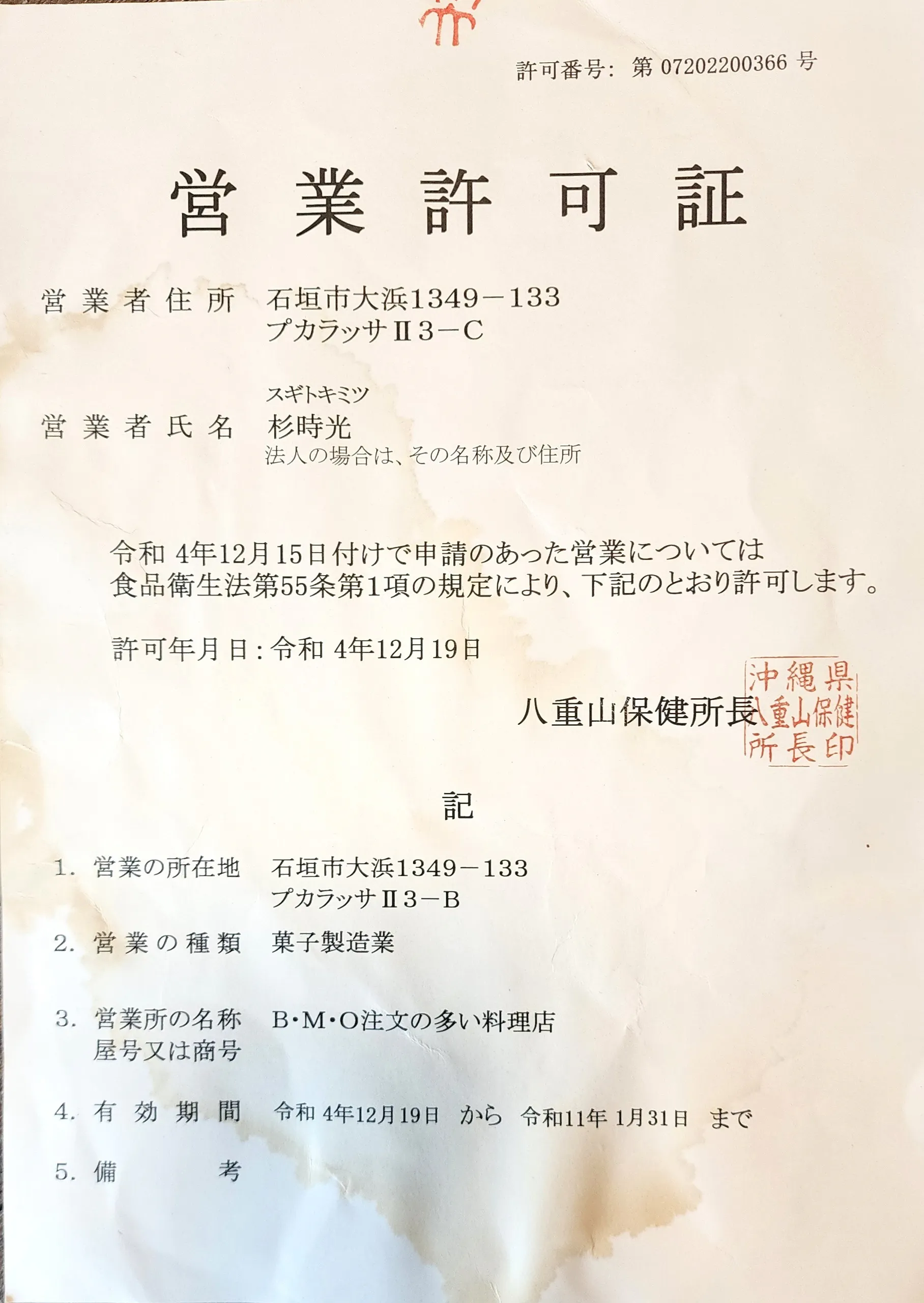 御覧の通り惣菜、製菓の免許も取得している事から全国販売も全てが整えば出来るようになります。