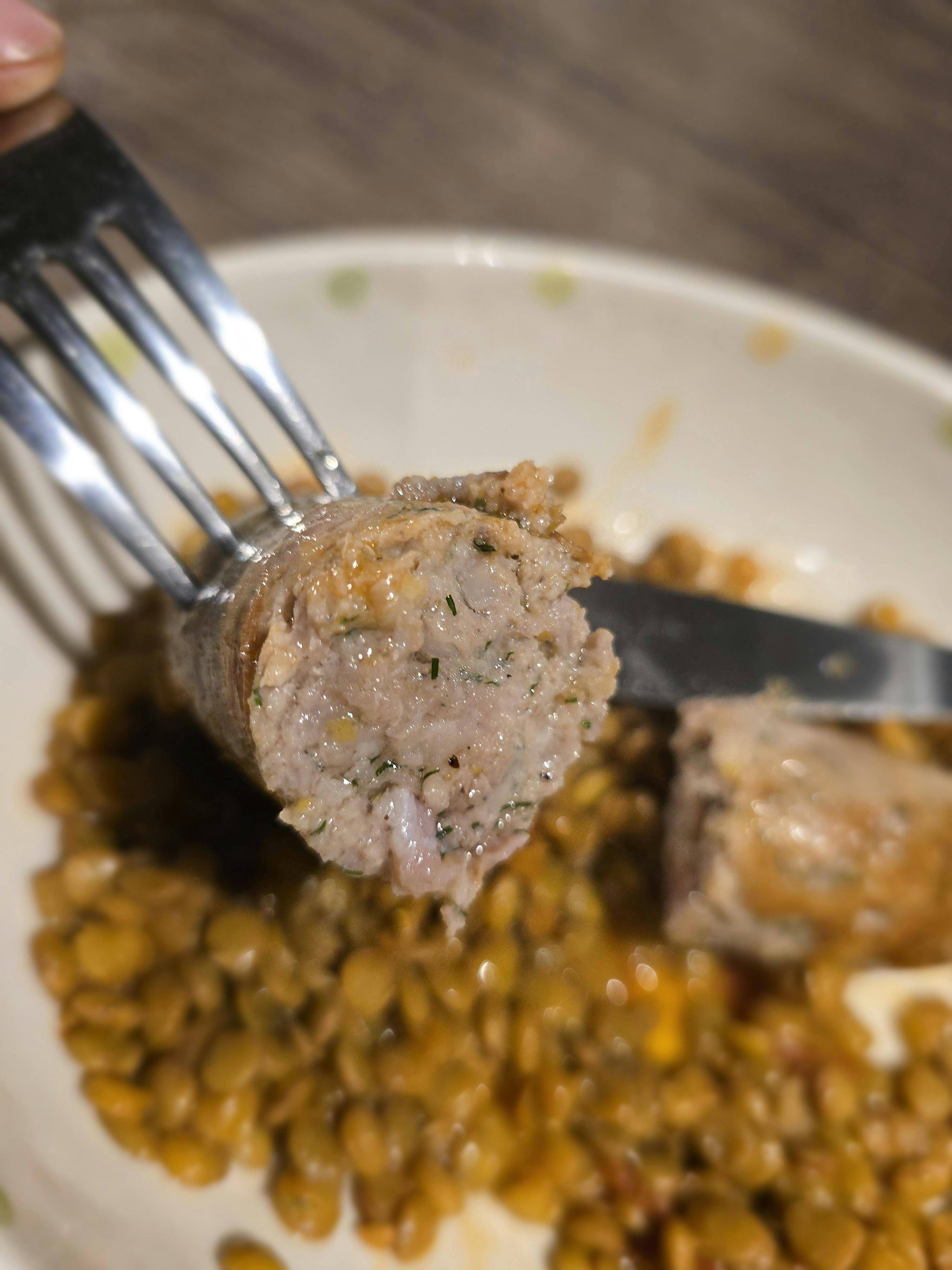 付け合わせで使いましたレンズ豆はイタリアでは年末年始の縁起物で、形が貨幣のコインに似ていることから、食べると金持ちになると言われてきました。