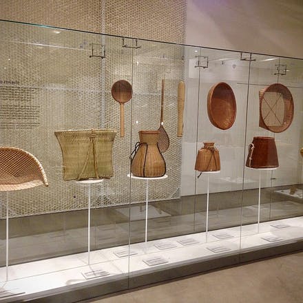 廣島さんの作品の価値をいち早く認め、それを外に向けて発信された故・中村憲治氏(当時・日之影在住)の尽力によって、作品は海を渡り、アメリカ・スミソニアン協会国立自然史博物館、大英博物館に所蔵されました。1994年~1995年ワシントンで開かれた展覧会は大変な盛況だったとのことです。竹籠そして渡米された廣島さんのお人柄に多くの方が魅了されたと聞き及んでいます。
