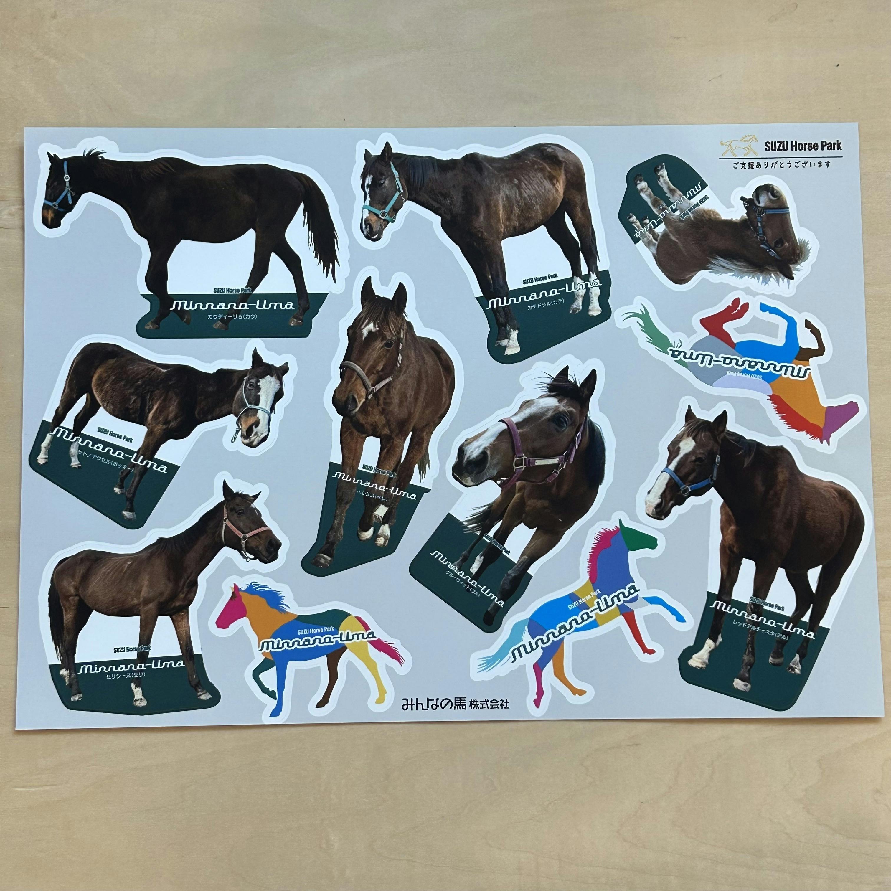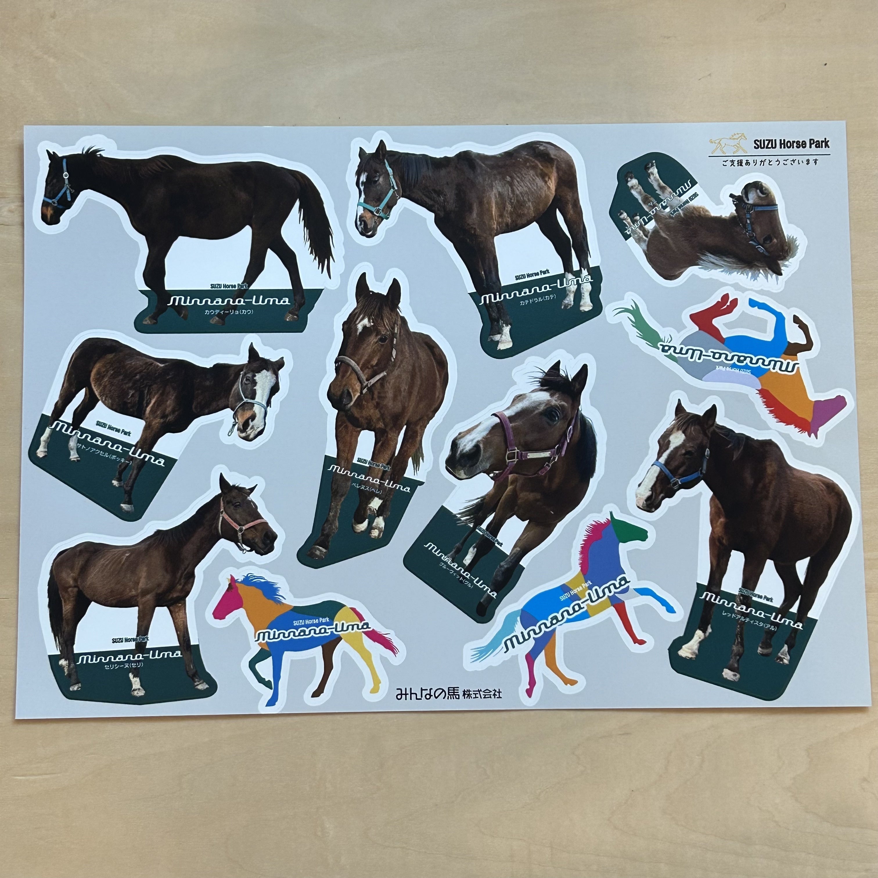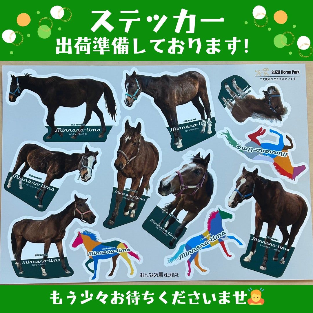 ステッカーの配送準備が整いましたので、来週より発送を開始いたします。またデザインが当初のものから少し変更になりまして(予告もなく変更してしまい申し訳ございません。)、可愛らしく、凛々しい表情の馬たちのステッカーになっております。