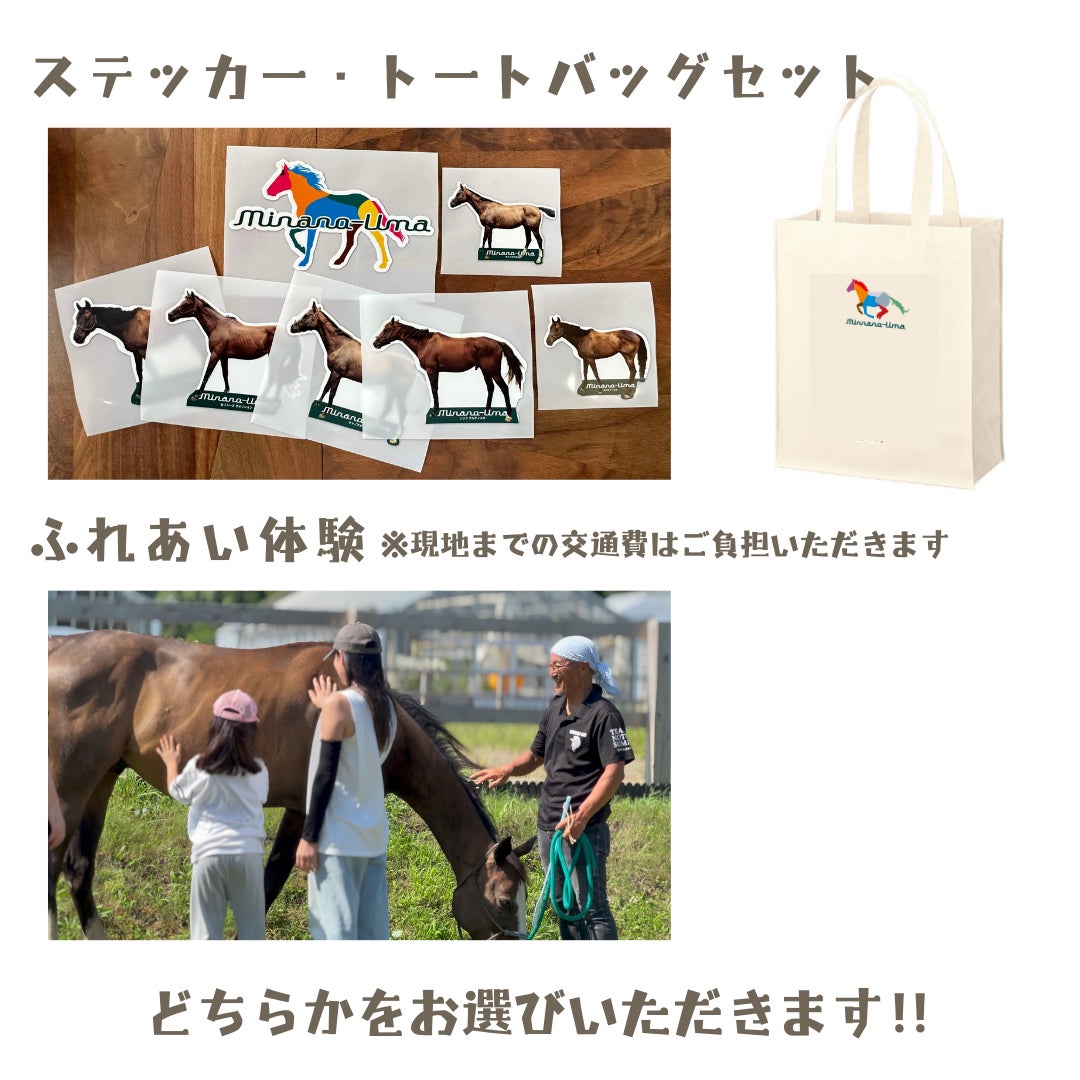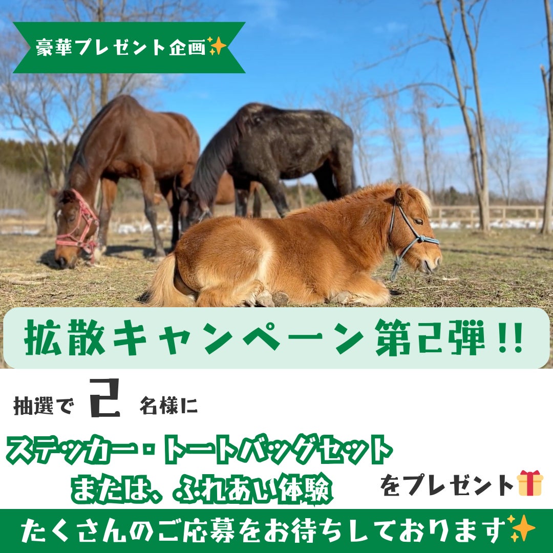リターン紹介または、クラファンに対する皆様のメッセージ・拡散投稿いただいた方から抽選で2名さまに、「ステッカー・トートバッグセット」または「ふれあい体験」をプレゼントします!