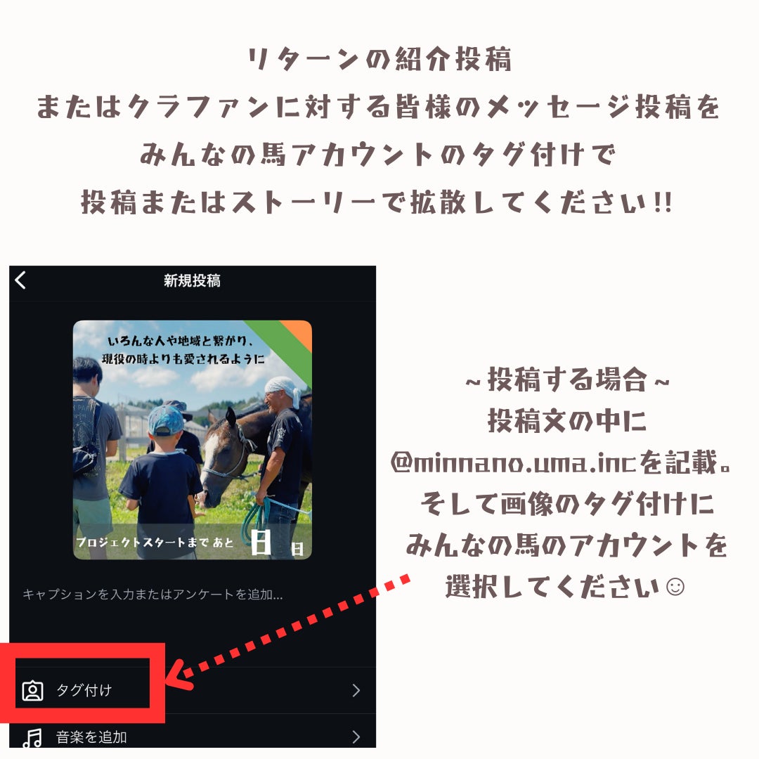 ・投稿文に@minnano.uma.incと画像にメンションしてインスタグラムに投稿