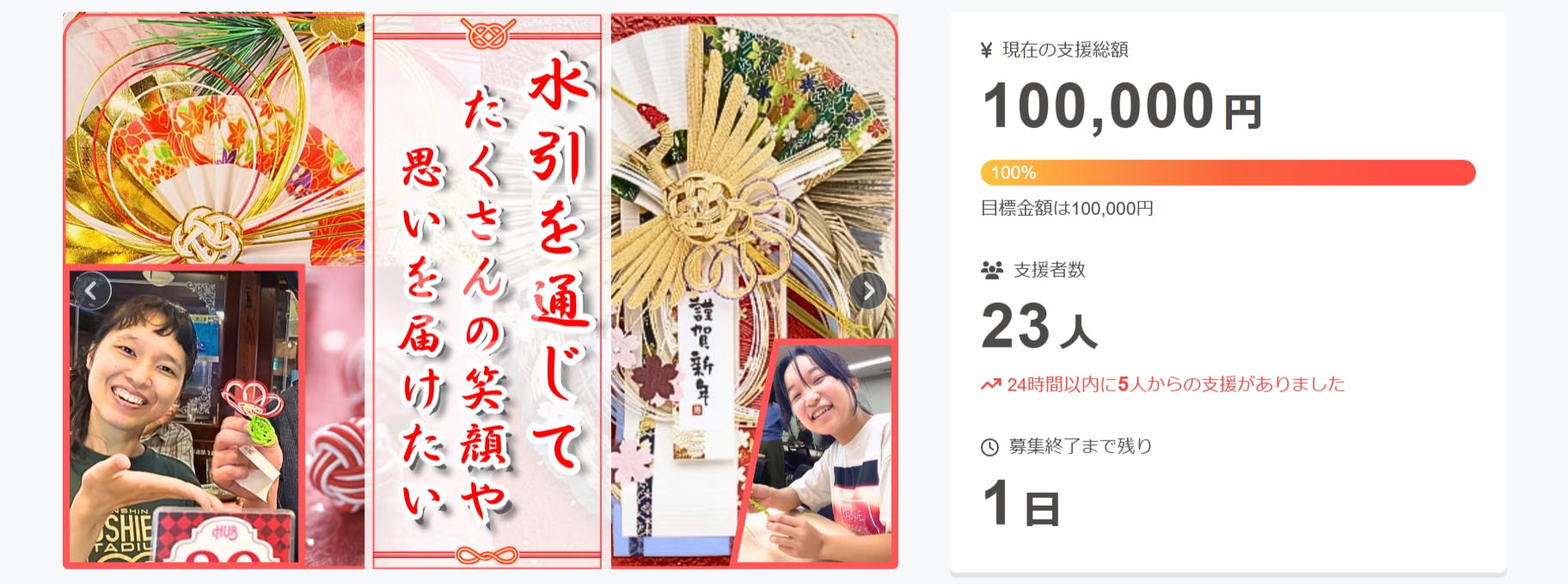 皆様のおかげで、最終日を前に目標金額の100%を達成できました!