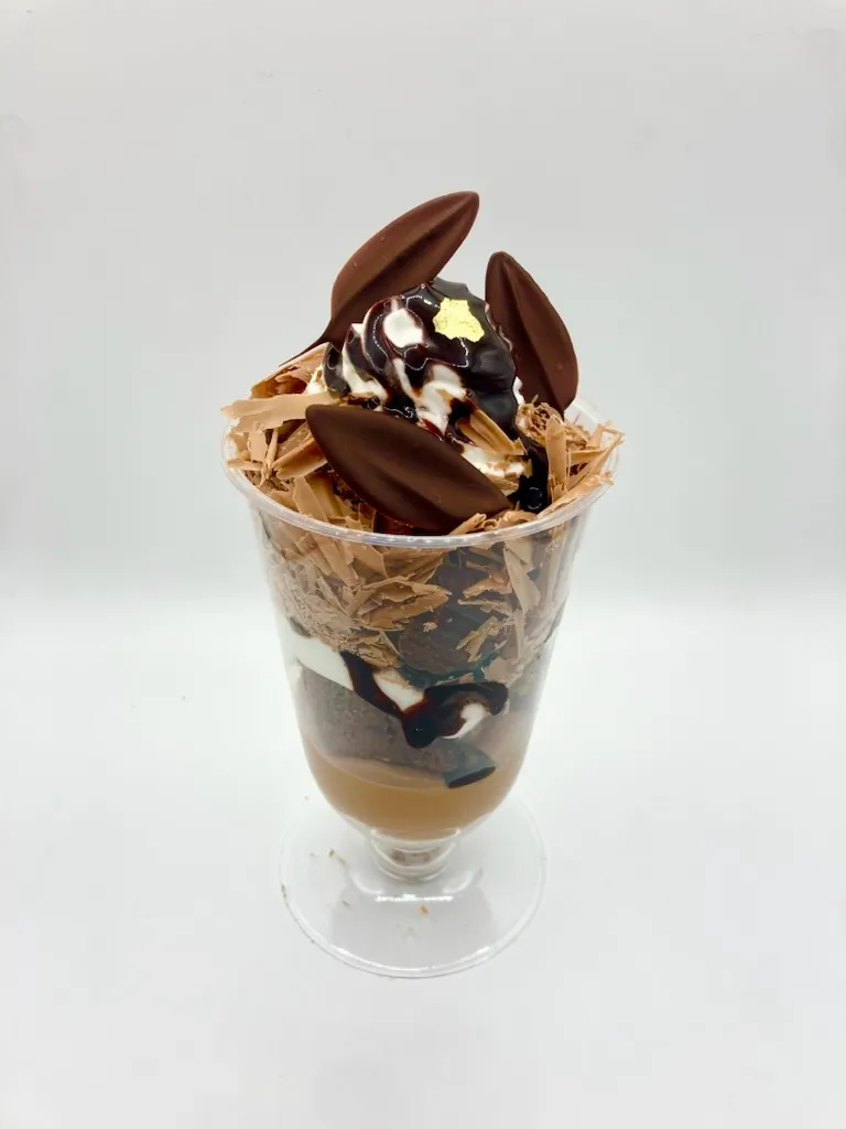 2025/01/28 12:48大きいサイズのパフェの試作ができました。中にはバニラアイスが入っています。温かい飲み物も用意します。一緒に食べればおいしく頂けると思います。 もっと見る