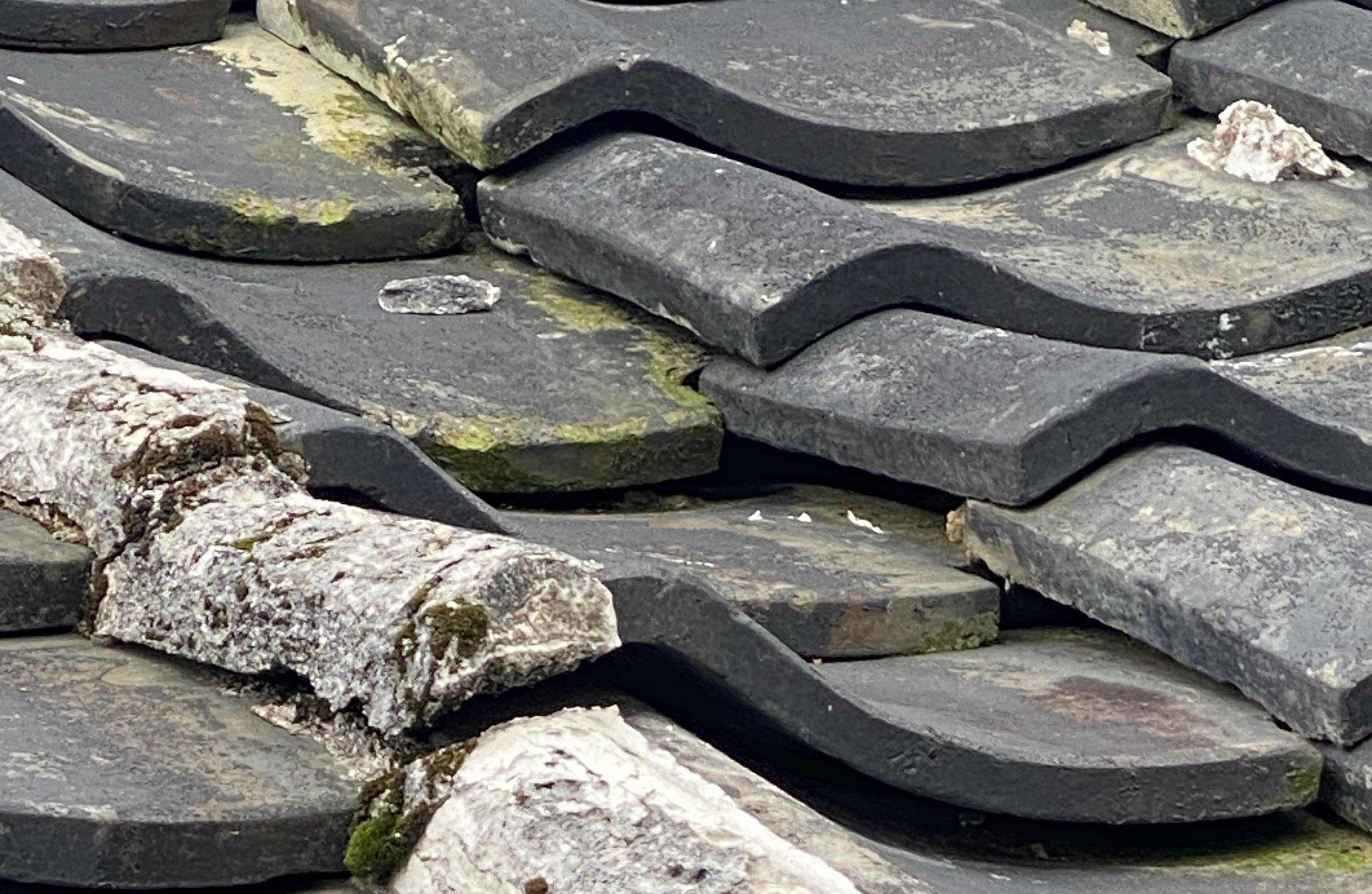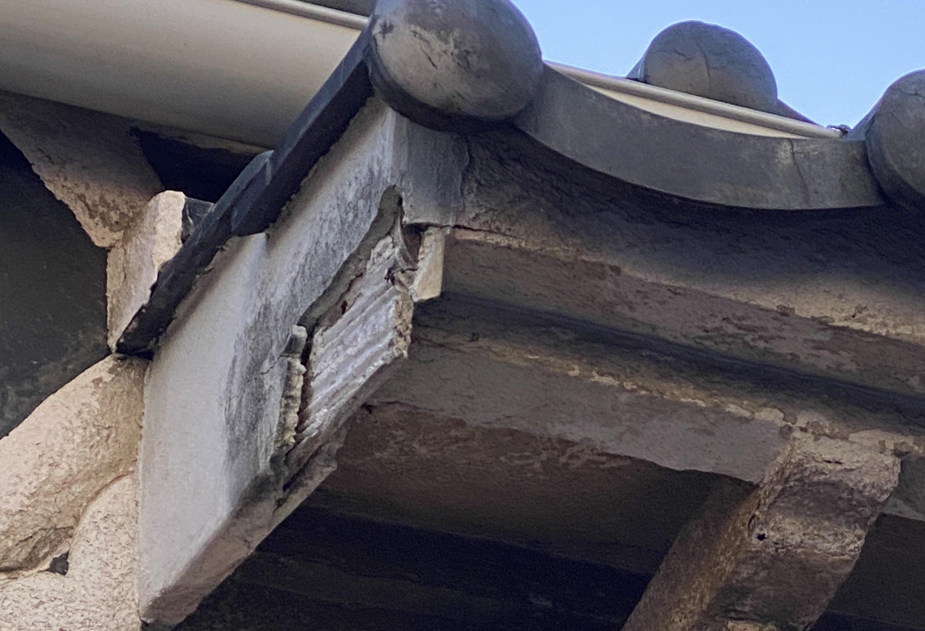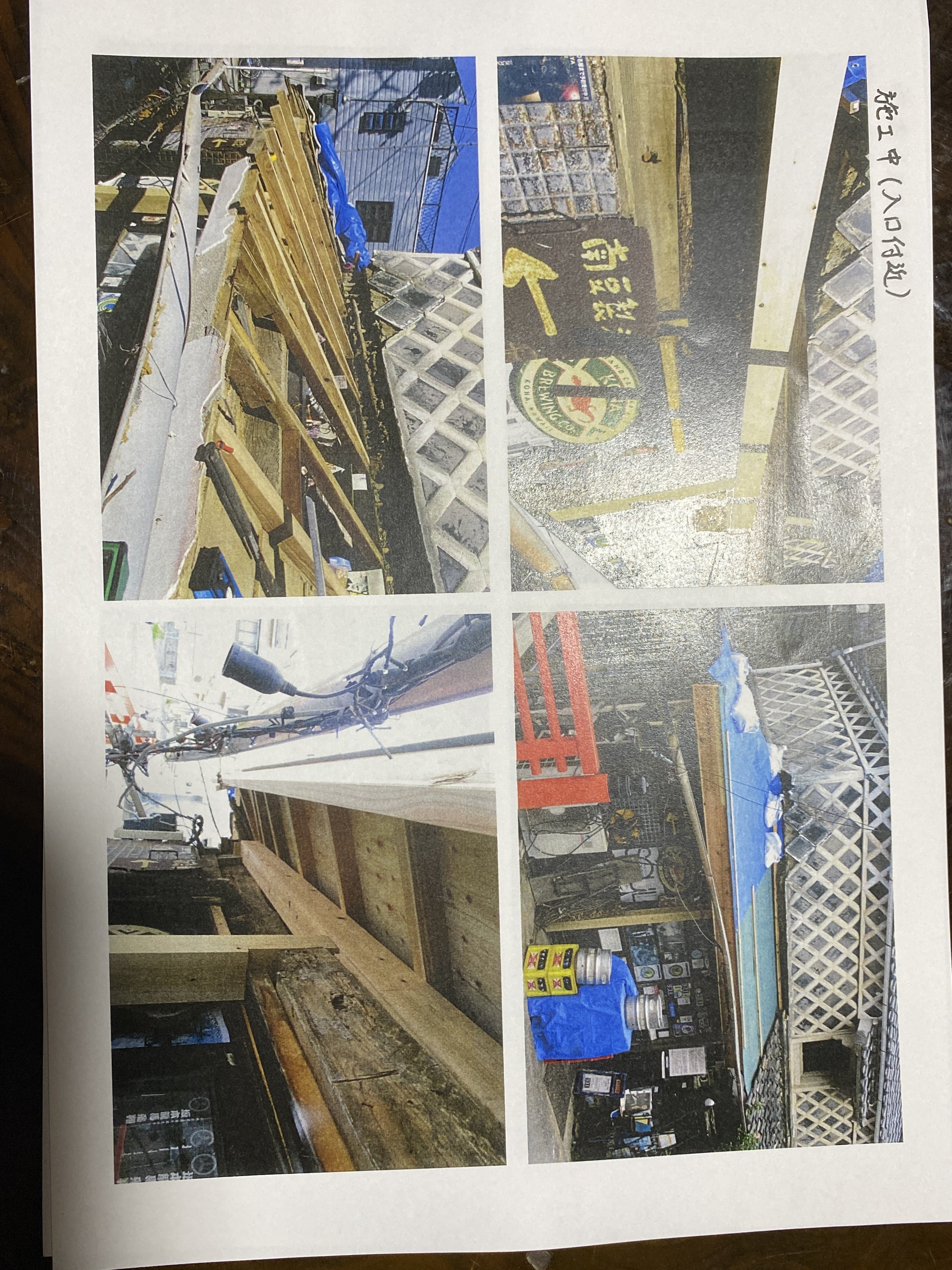 夜の営業時にでもわかるほど瓦屋根が歪み陥没しているのが目立ってきました。