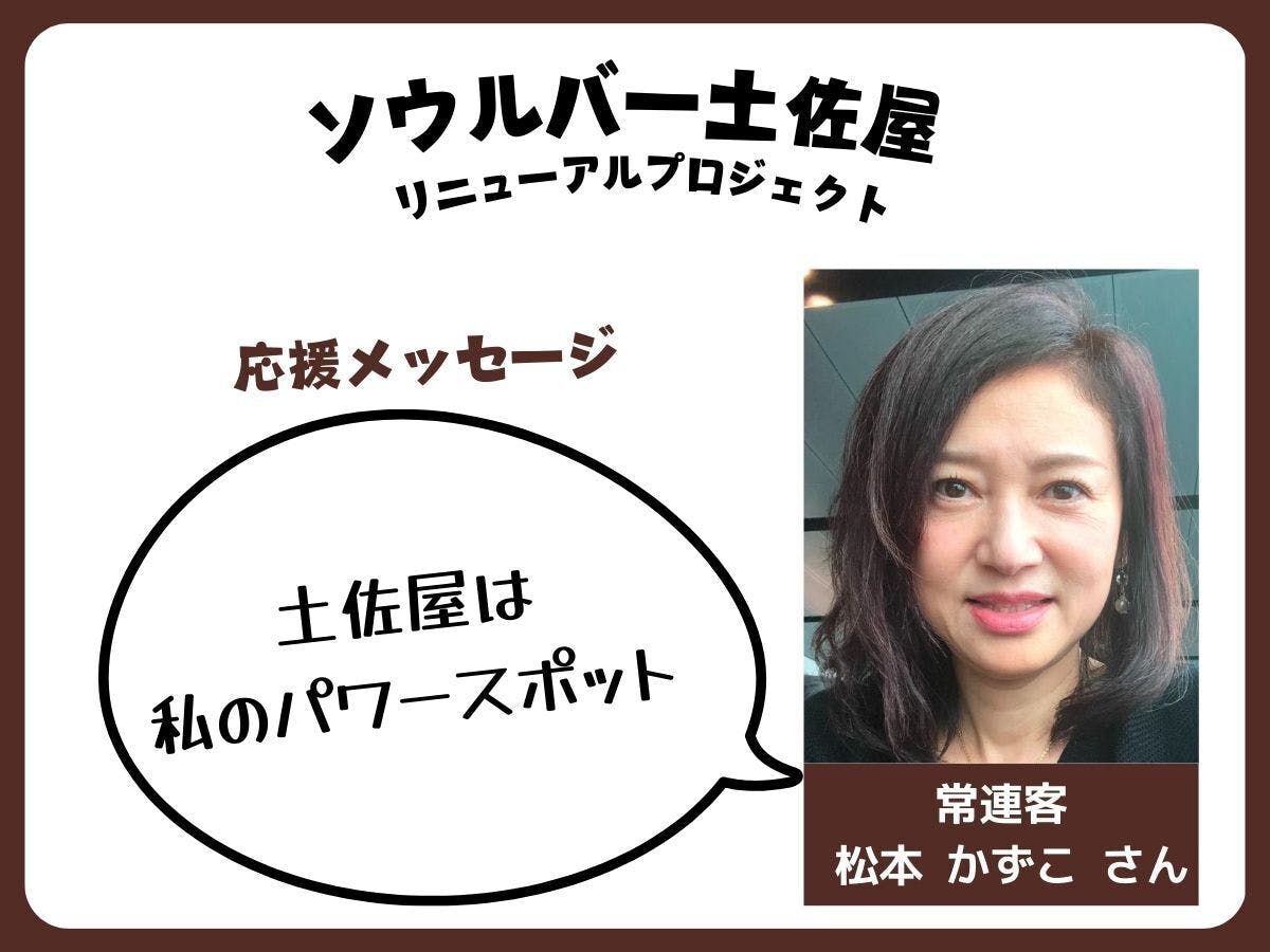 「土佐屋は私のパワースポット」と仰っていますが、私もかずこちゃんから土佐屋を続けるパワーを頂いています。いつも本当にありがとうございます。