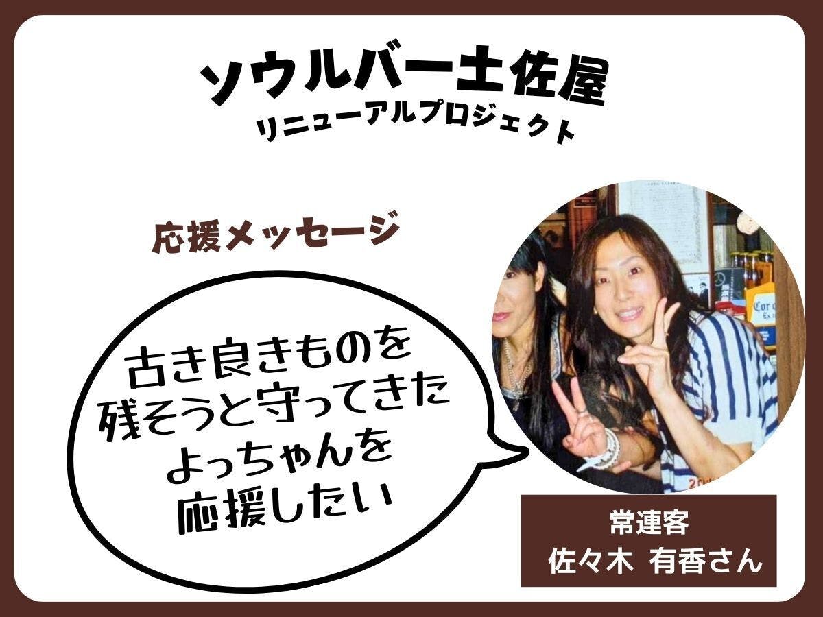 オープンからの常連客の佐々木有香さんから応援メッセージが届きました!この店を維持していくための手間暇について、見てる人は見てくれてるんだな〜と感激です(泣)心強い応援、本当にありがとう!