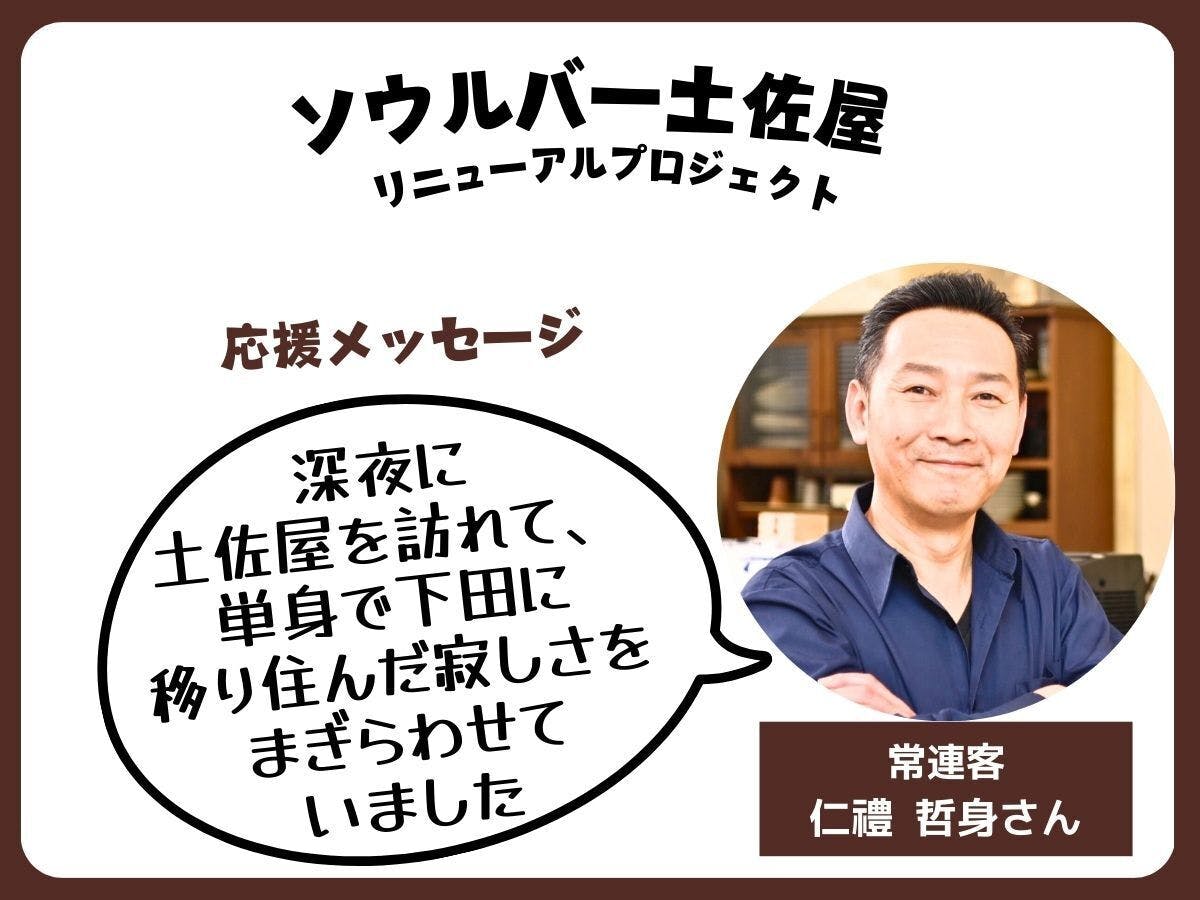地元の常連のさん達はもちろん、日本全国、世界各国から訪れる土佐屋さんファンのために、何としてもこの危機を乗り越えて継続させて、居場所を残して下さい。