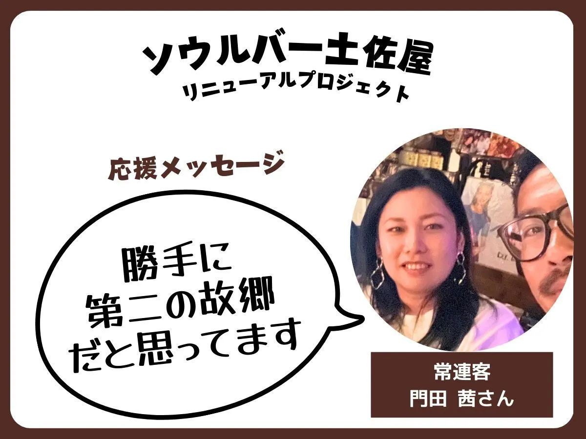 2年ほど前からしょっちゅう横浜から土佐屋に通ってくれている、あかねちゃん、門田茜さんから応援メッセージが届きました!