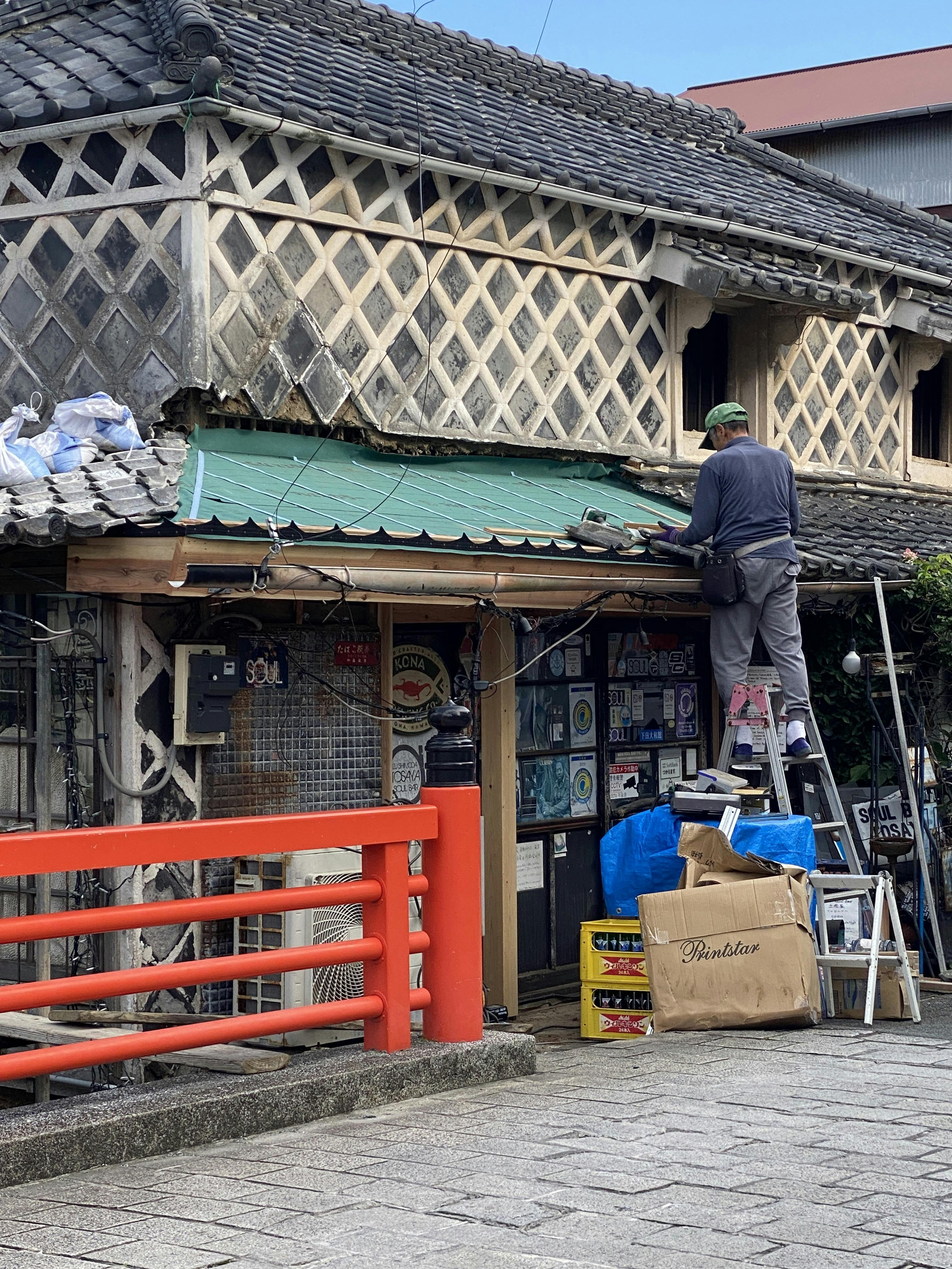 本日足場もはずれ崩れそうだった部分の修繕が完了しました。見た目はあまり変わりませんがナマコ壁の中も瓦の下もぐずぐずで本当に来年までは持たずに崩れてたねって業者の皆さんに言われました。皆様のおかげでなんとか土佐屋が存続できる兆しが出来て来ましたので今後も是非応援よろしくお願いいたします。店内工事は日々頑張って営業しながらぼちぼちやっていきますのでそちらも乞うご期待です。皆様に支えられて残った土佐屋が継続できるように皆さんの来店お待ちしています。まだまだ市の建設課に工事の書類沢山出したり、リターンもミックスCDとオリジナルカクテルは現在進行形なので待っててね、大きな木札はもう直ぐできるよ。皆さん、ありがとうございます。土佐屋はまちのシンボルだし、ペリーロードの目玉だからね、とか皆さんに言われ続けているので1日でも長く存続できるように頑張ります。