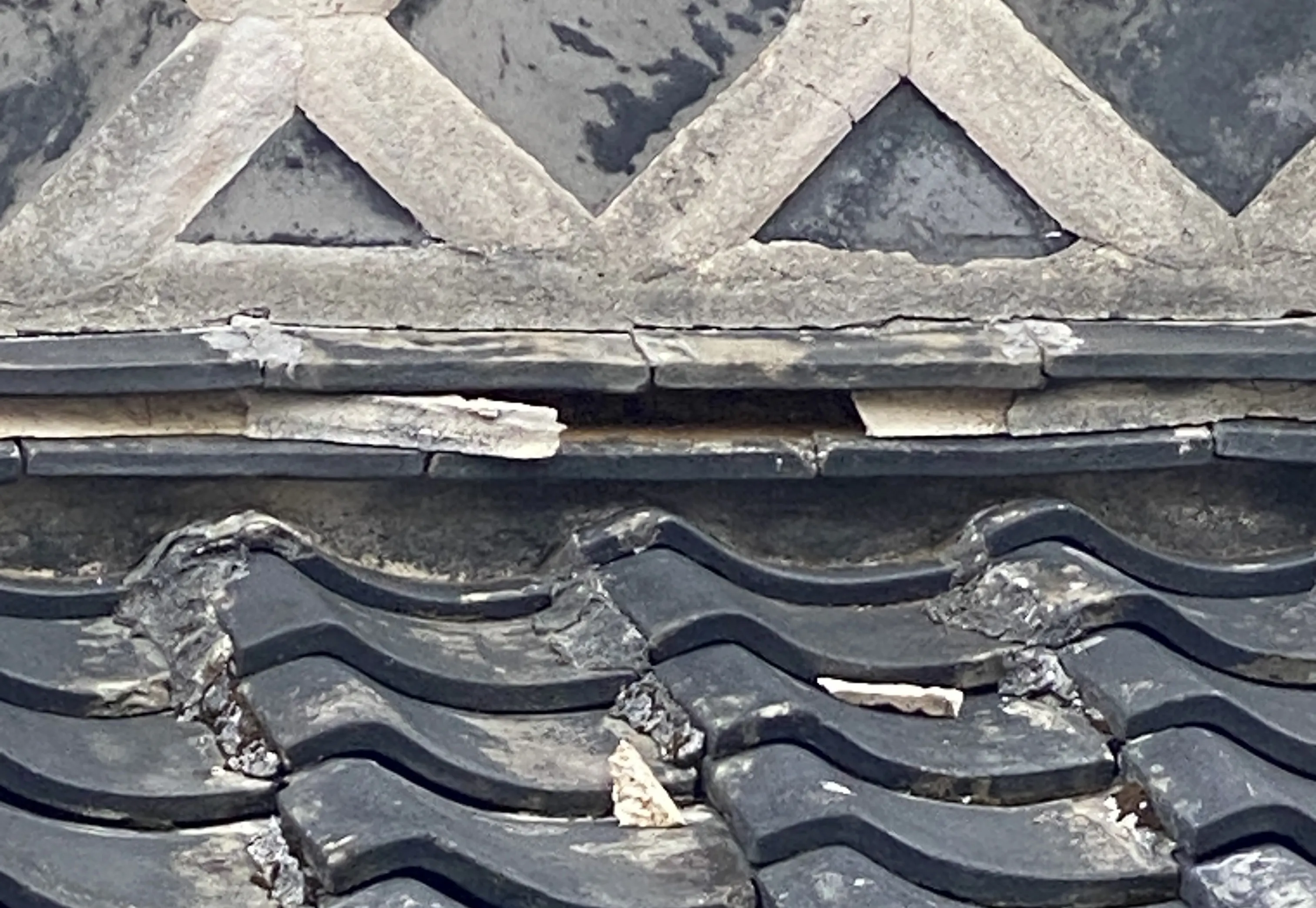 夜の営業時にでもわかるほど瓦屋根が歪み陥没しているのが目立ってきました。