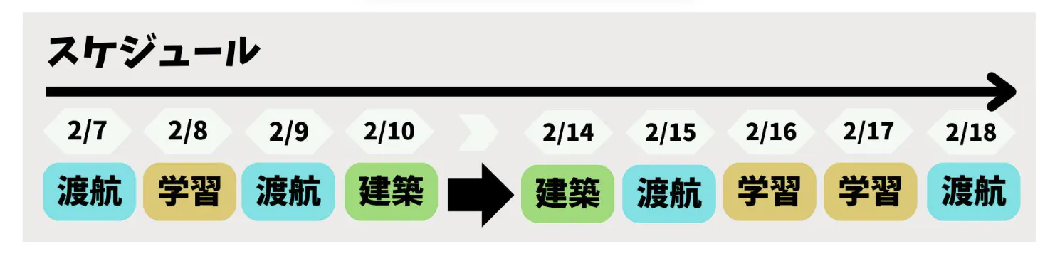 ※建築活動の行えない土曜日、日曜日は、現地の環境に慣れることや、文化交流を目的とした文化学習活動、移動を行います。