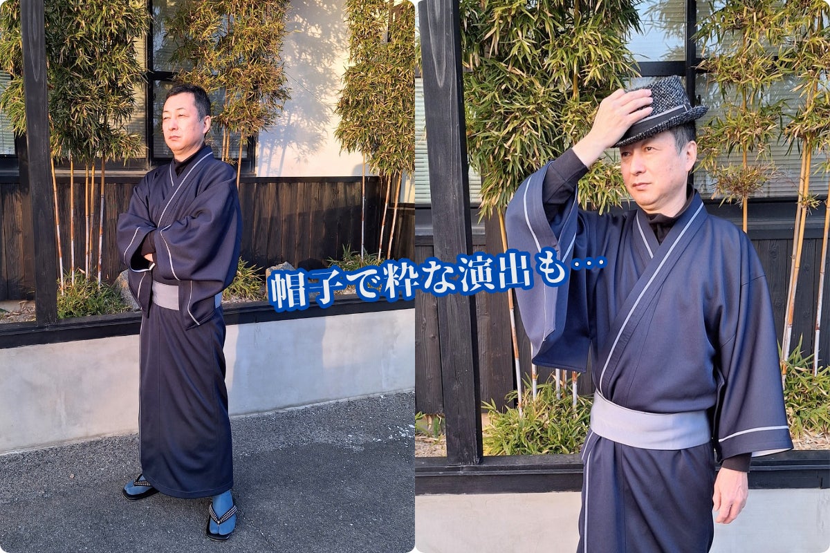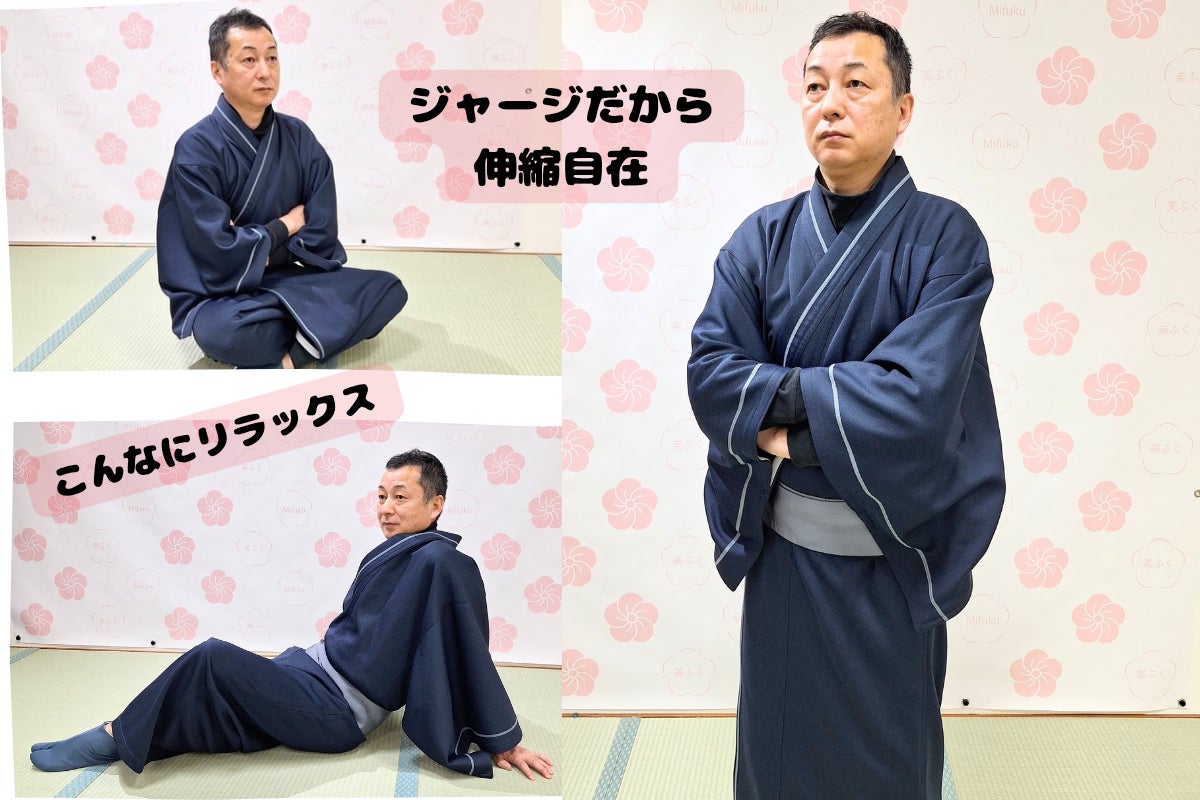 ジャージ生地を使うことで伝統的なきものの形式にとらわれず、より現代的でアクティブなライフスタイルに合ったきものを作りました。