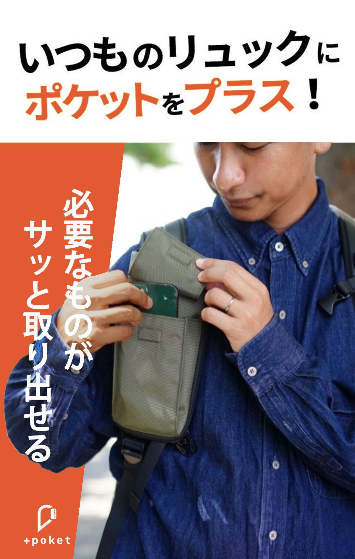 お手持ちのリュックに手軽に収納バッグをプラスできる、+poket(プラスポケット)略して「プラポケ」