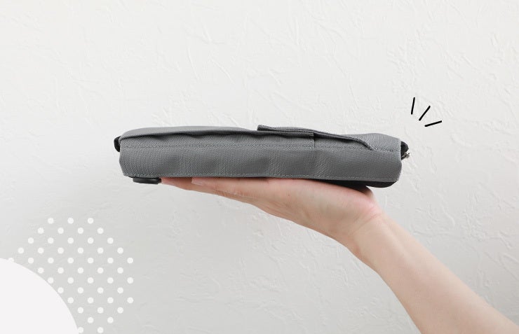 折りたたみ時の厚さ約3cm、サイズ約23.5×12.5cmと、とてもコンパクトな形状です。