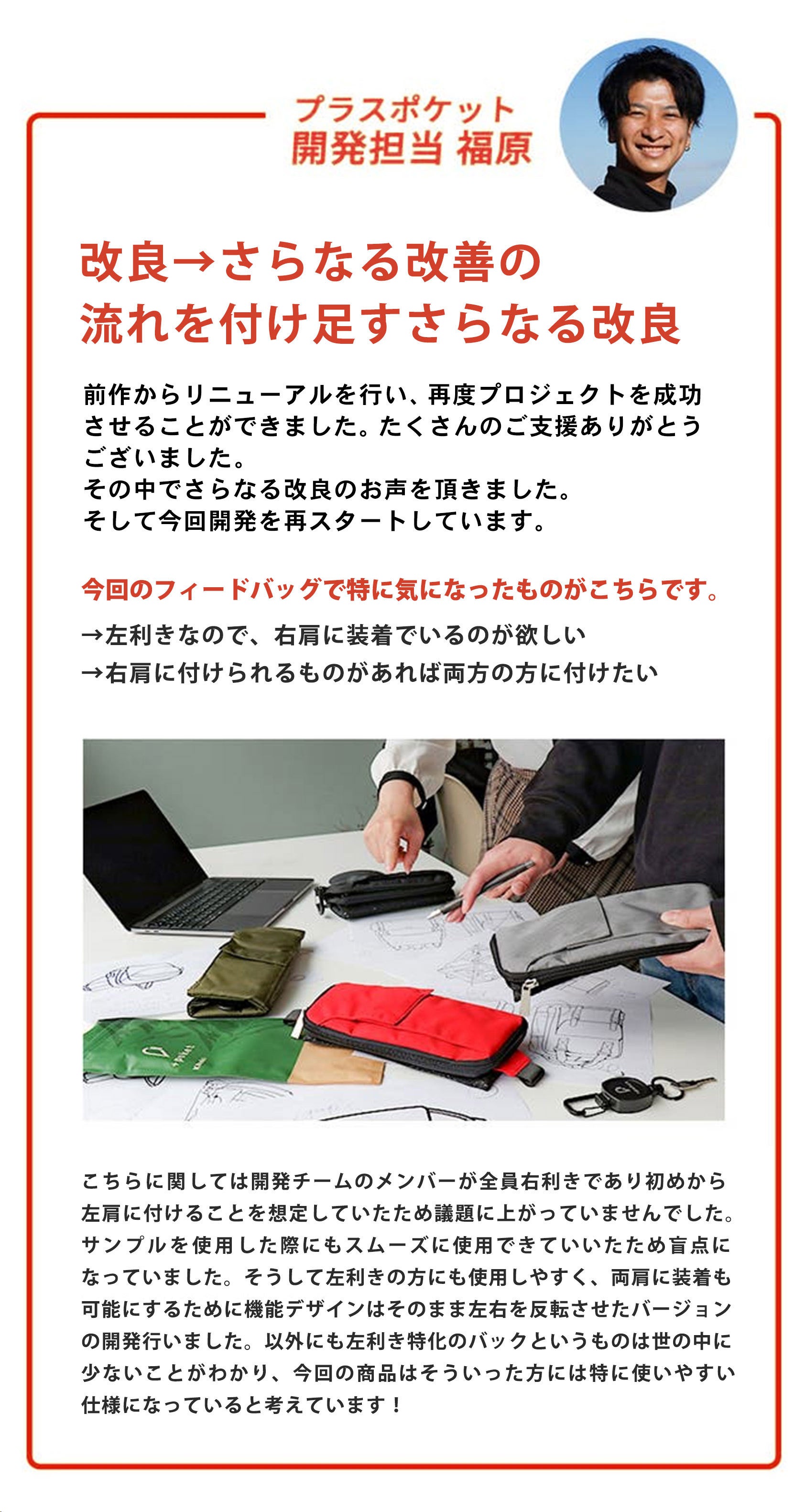 このように大きな反響があったことにより、国内外から多くの応援コメントや改善提案をいただくことができました。そしてそちらの意見を集約し今回第二弾となる【+poket COSTOM】のプロジェクトに進むことができました。支援者の皆様と協力して、自分一人では思いつかなかった細かい部分の改善も行うことができ、前作よりもさらに使いやすくなっています。