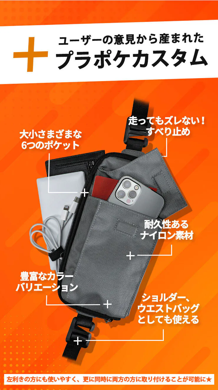 ・ショルダーにした際は左肩にかけて、右手でポケットの開け閉めがしやすいです。