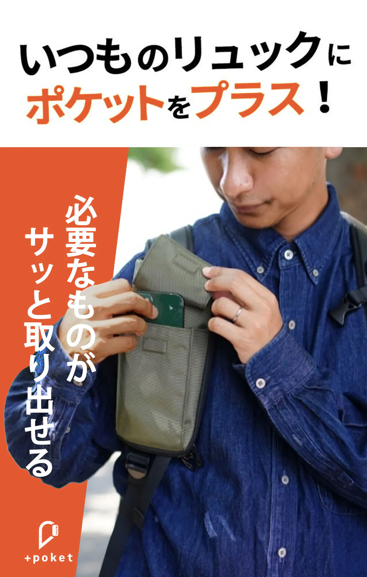 お手持ちのリュックに手軽に収納バッグをプラスできる、+poket(プラスポケット)略して「プラポケ」