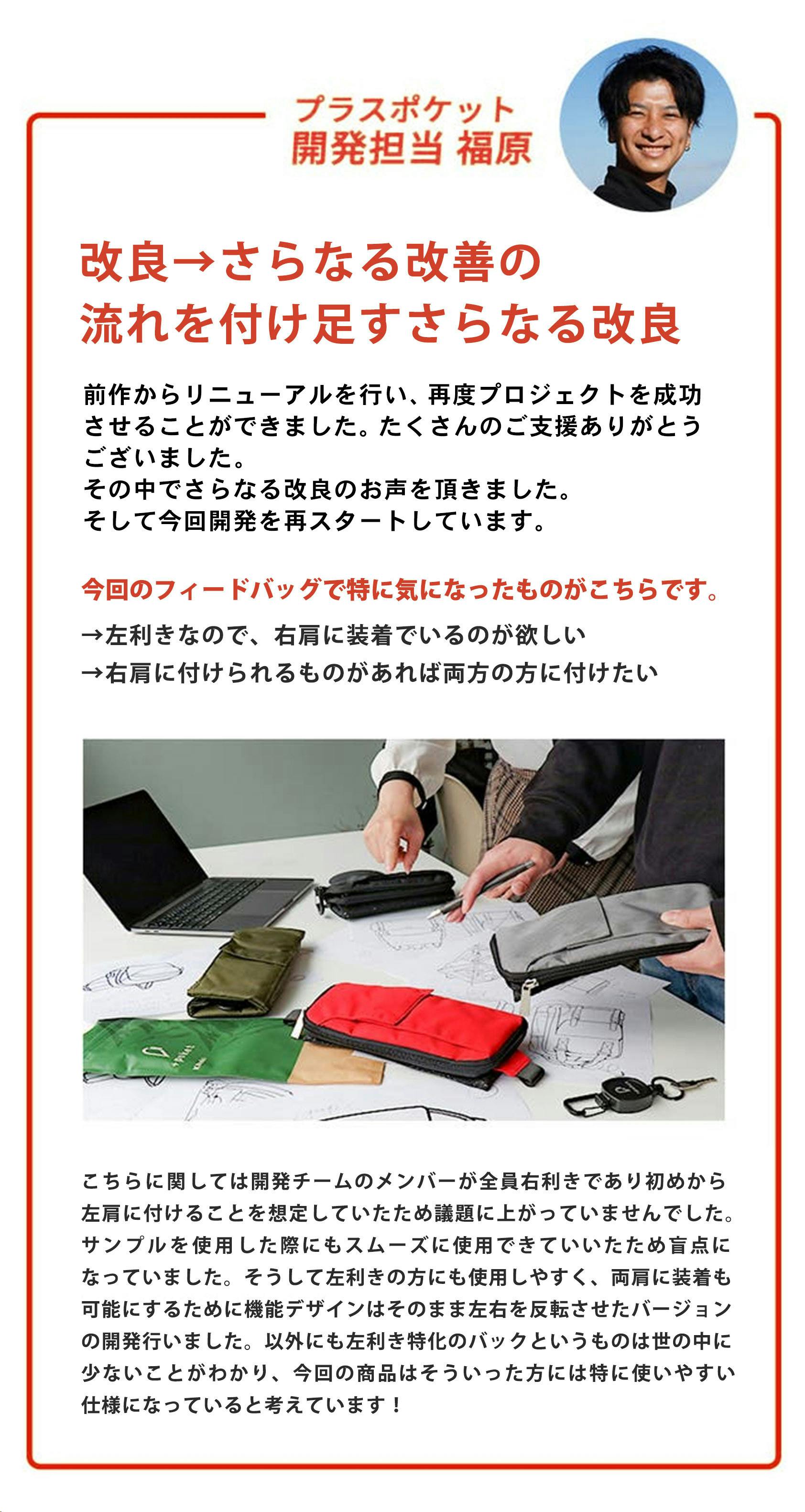 2025/04/04 11:43皆様たくさんのご支援ありがとうございます!今回も350万円を超える支援を集めることができました。支援や応援のコメントとても嬉しいです!【発送に関して】商品の検品作業をプロジェクト終了時からスタートしており、発送作業が先日から始まっています。もうすぐお手元にお届けできると思います。楽しみにお待ちください!【今後に関して】+poket CUSTOMは皆様から多くの好評の声を頂いております。今後一般販売に向けて準備を進めていきます!また今回の商品をベースに更なる改良を行っていく予定です。更にリュックユーザーの悩みを別の角度から解決する新シリーズの開発、対象商品ジャンルを少し広げた姉妹ブランドの設立など2025年も新たな動きがありますのでぜひ楽しみにしていただけたら嬉しいです!【企画参加者募集】現在SNSを通して皆様の意見を集約し、新たな商品や改良版の開発を行っています。DMやオンラインのミーティングで商品の感想や改良案を募集しています。+poketの商品開発に協力してくれる方、自分にあった理想的な商品を開発した方などいらっしゃいましたらお声かけいただければと思います!詳細な情報は公式SNSをご確認ください。これからも+poketを応援宜しくお願いします!【プラスポケットプロジェクトInstagram】https://instagram.com/pl_poke_project?igshid=NTc4MTIwNjQ2YQ==【プラスポケット問い合わせ窓口】https://lin.ee/3IH2mEG もっと見る