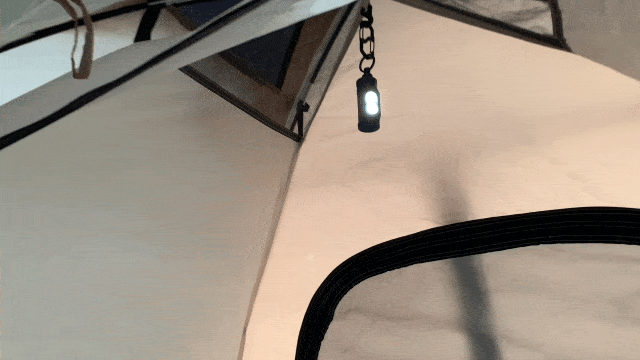 ◆テントの中央に吊り下げて、全体を優しく照らす「ランタン」として活躍