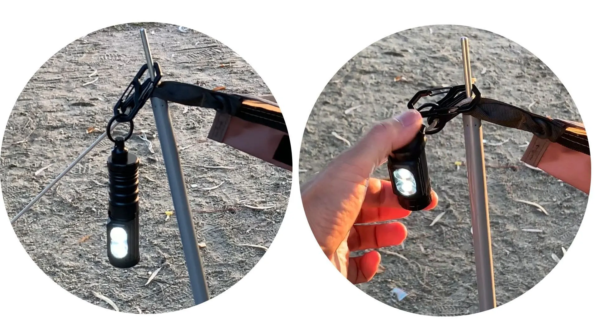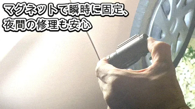 ◆キャンプ中のテント内での設置や、災害時の暗所作業でも、ライトの取り外しがスムーズに行えるため、操作性が抜群です。