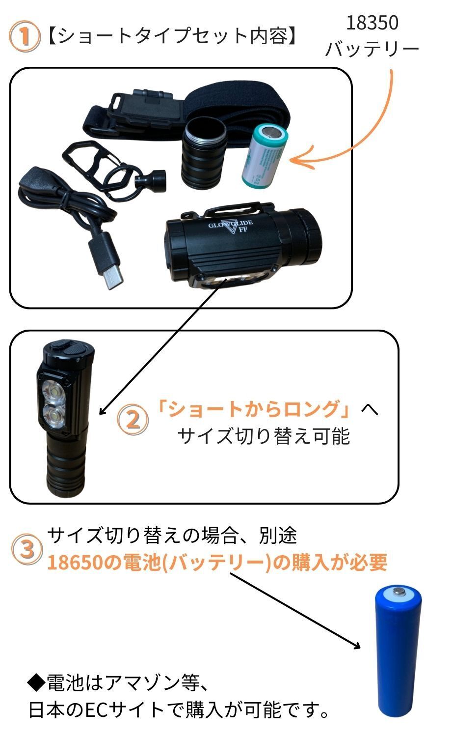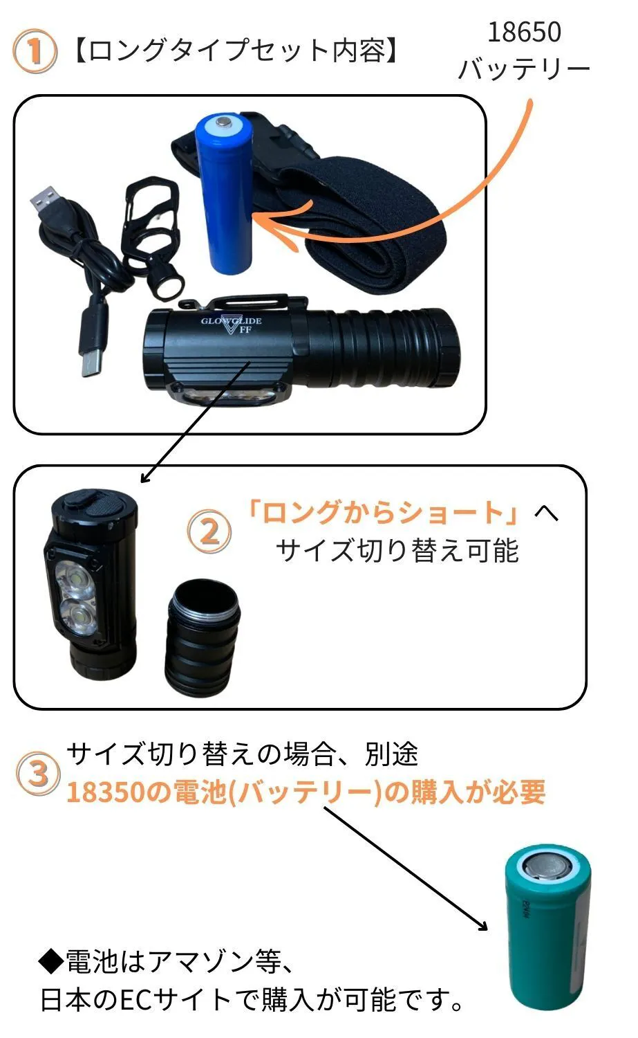 5Wayポイント5「サイズ切り替え可能・2サイズの電池から選べる」