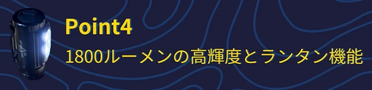 ◆夜間のキャンプや災害時の暗所でもしっかり視界を確保できます。