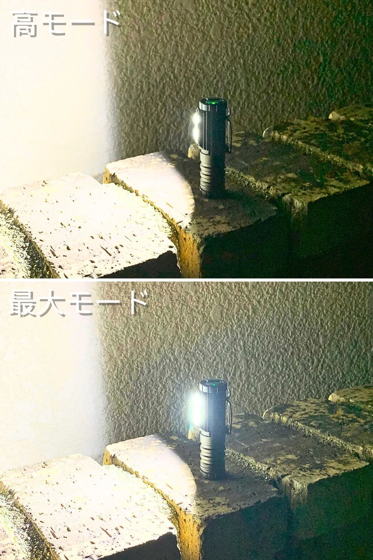 この懐中電灯は上下180度に調整可能で、照らしたい方向に自由に光を向けることができます。