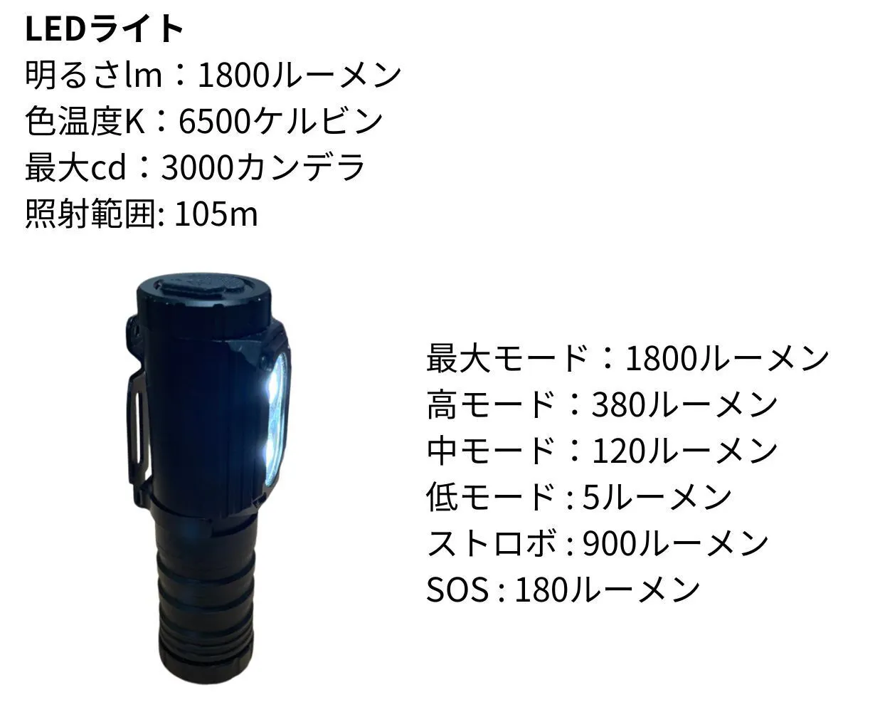 ◆懐中電灯としての強力なスポットライト機能に加え、ランタンモードで広範囲を照らし、ヘッドライトモードで両手を使いたい作業にも対応可能。