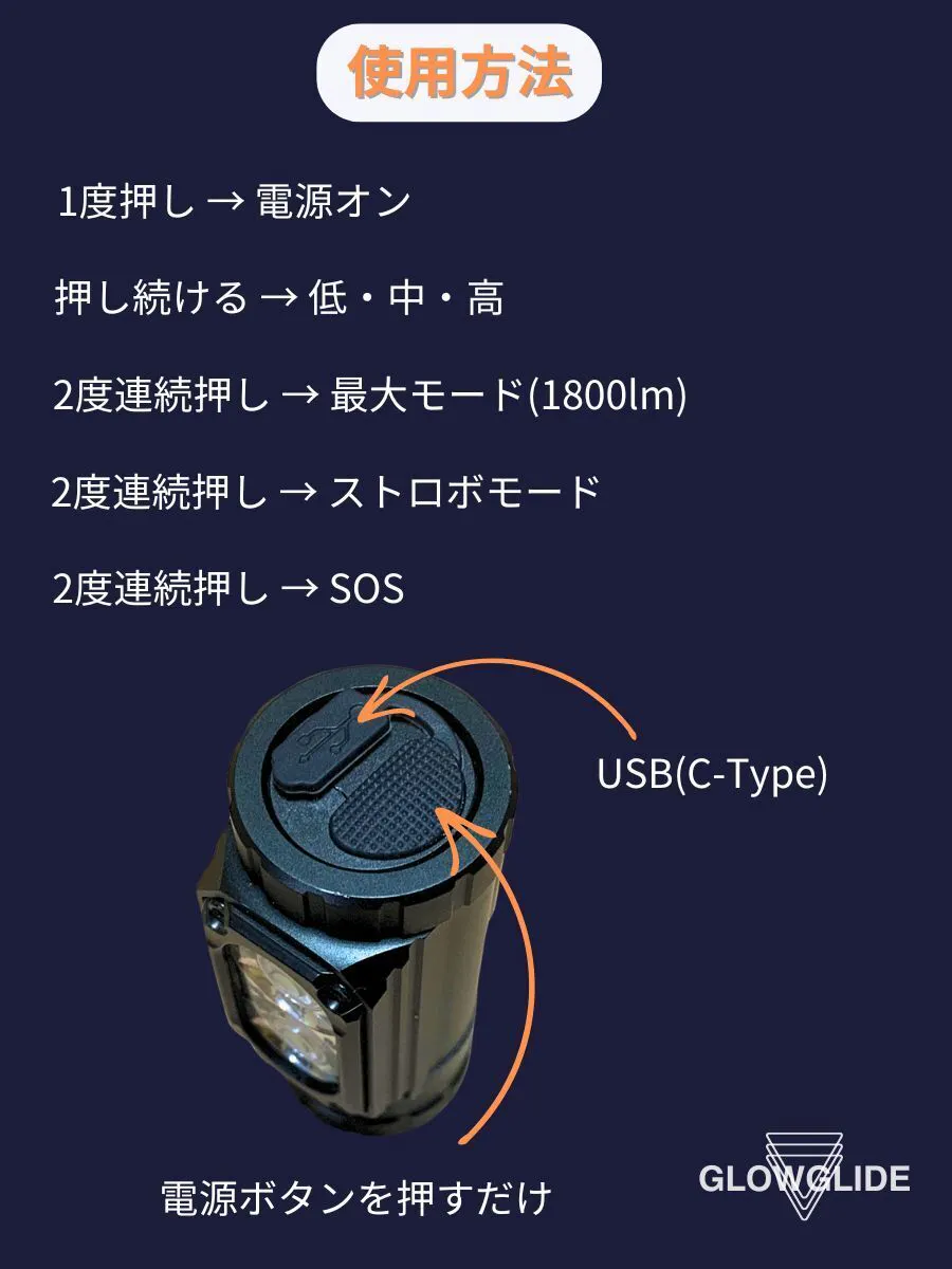 ◆このライトは、「懐中電灯」「ランタン」「ヘッドライト」として使える3つの機能に加え、「着脱式のマグネットキーホルダー」と「サイズ切り替え可能」なパーツを備えた、5Way機能搭載の新モデルです。