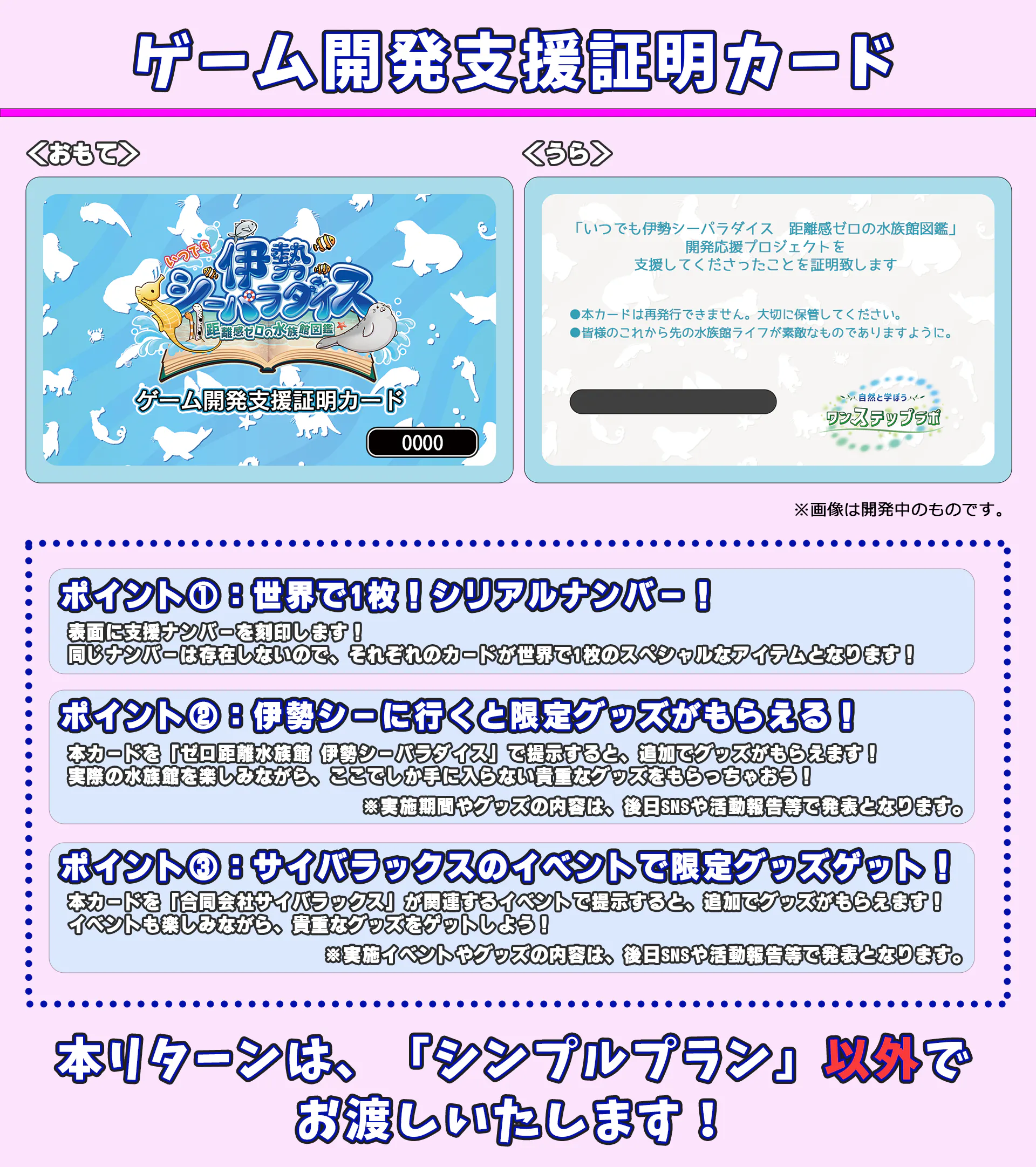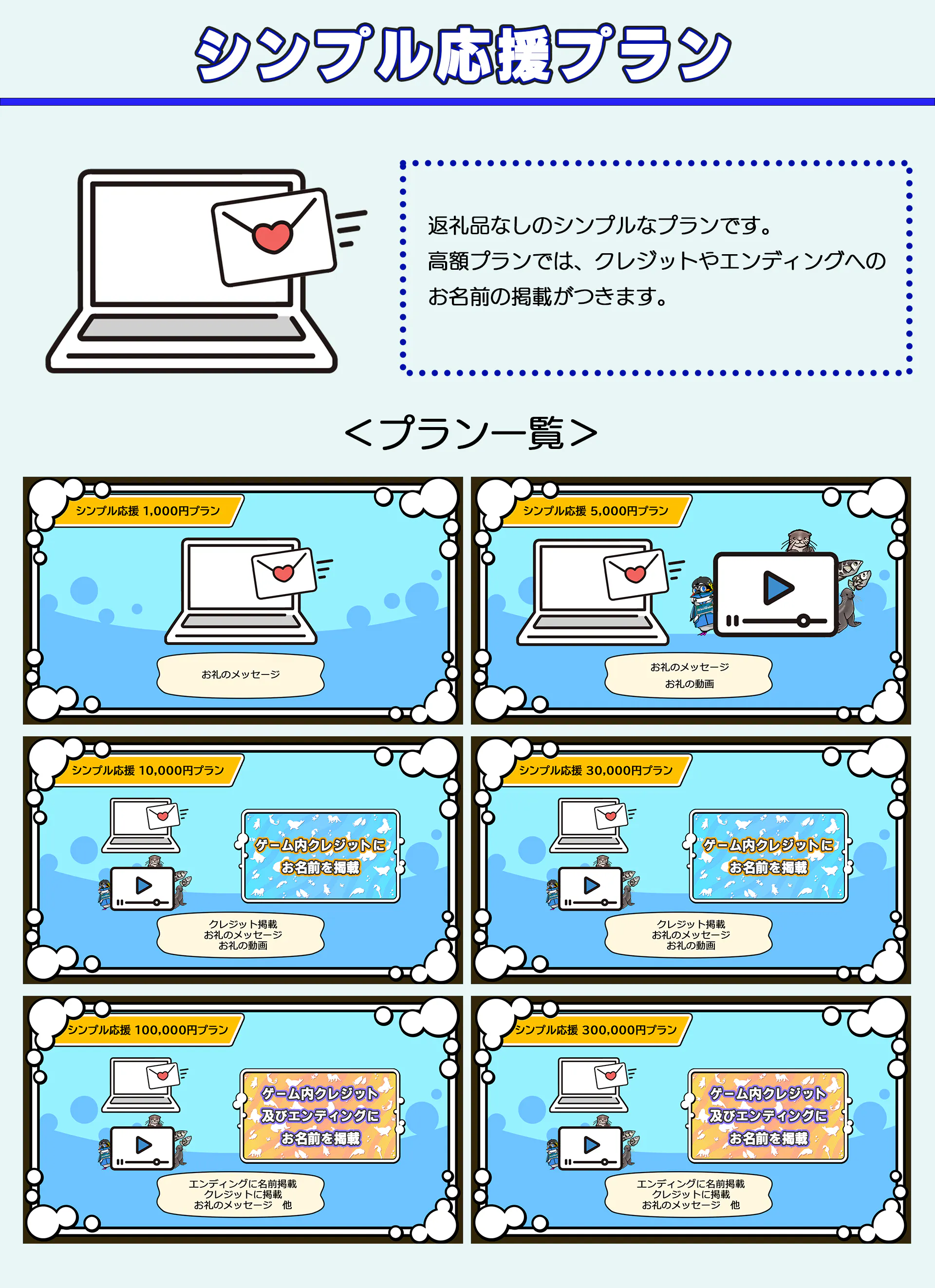※「シンプル応援10000」と「シンプル応援30000」は同じリターン内容になります。