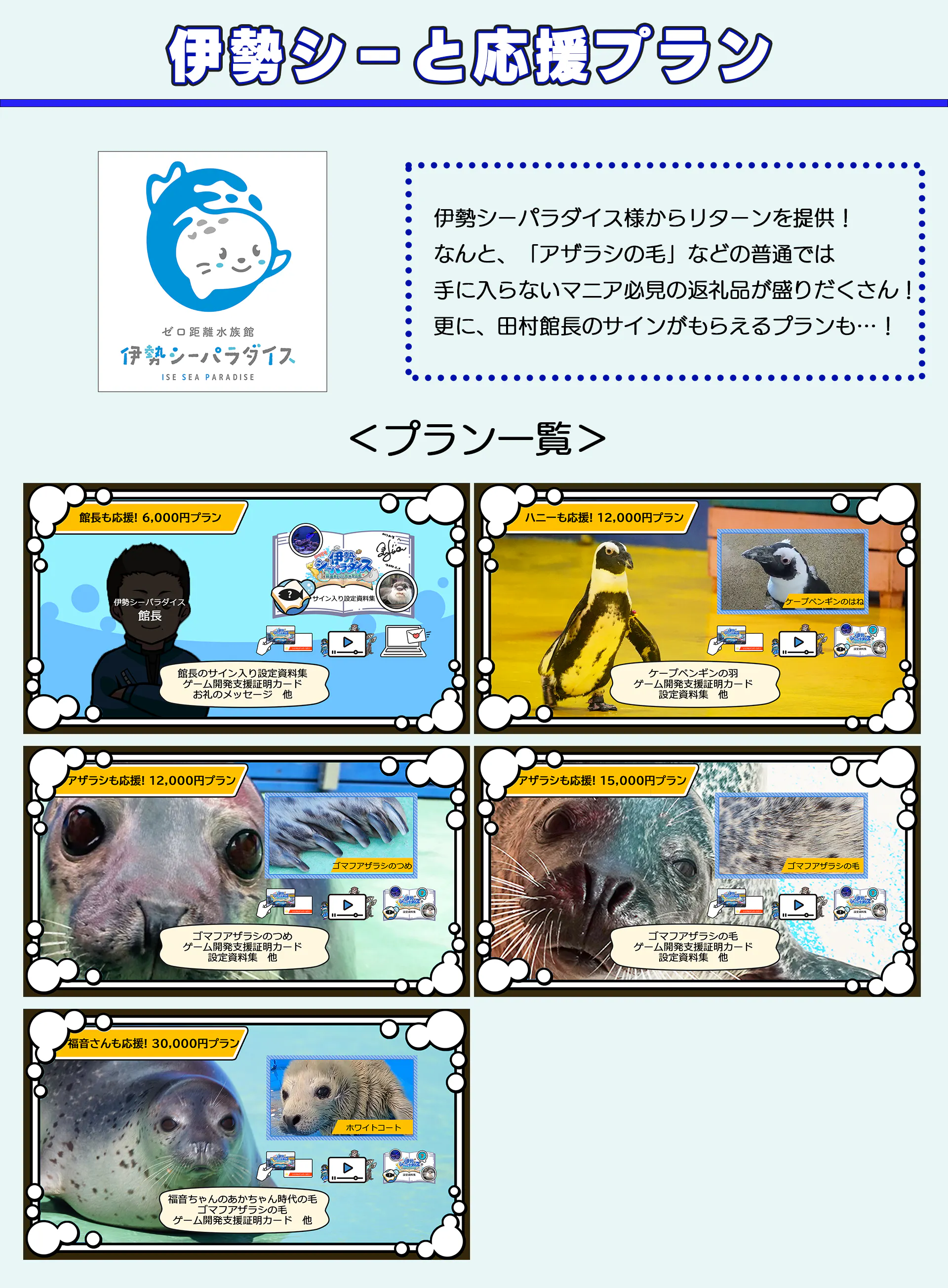 またクラウドファンディングで集まった支援金の一部は伊勢シーパラダイス様に寄付いたします。