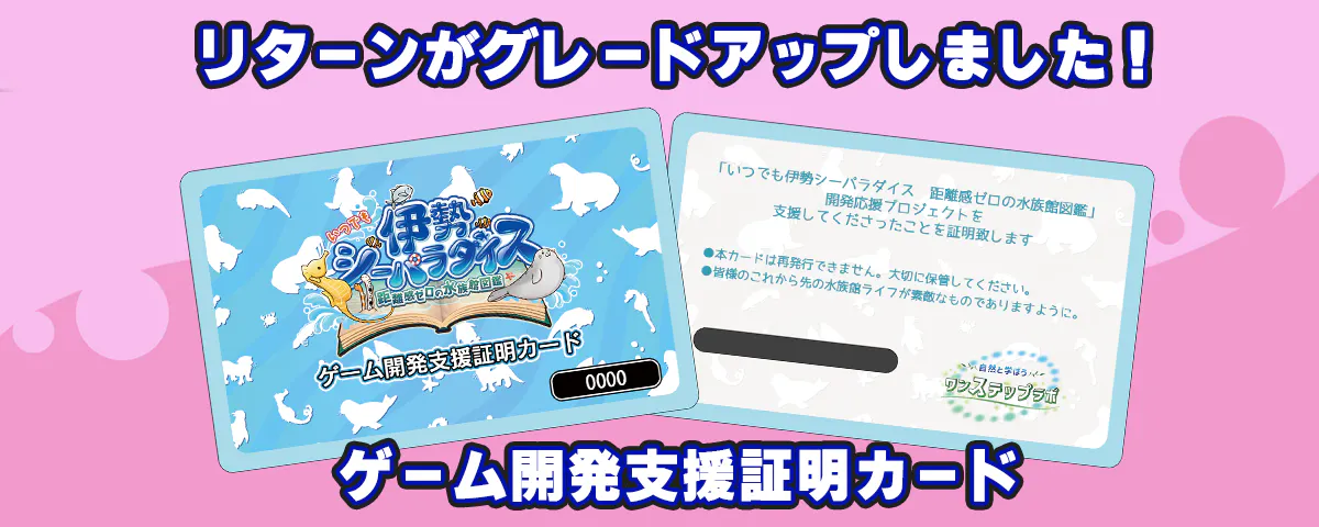 伊勢シーパラダイスでもらえる「ゲーム開発支援証明カード」追加特典の配布が
