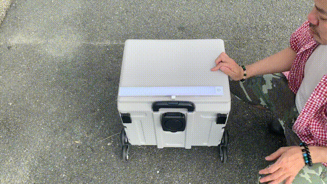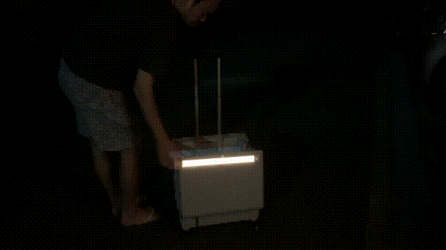今回開発した「Light-Upモデル」は、使用中にムード作りに加え、荷物を運ぶ際に周囲を照らし、「ライトが取り外せるので」周辺の忘れ物も簡単に探せます。