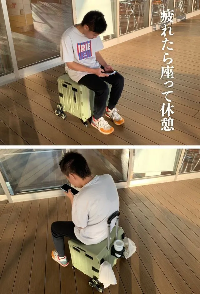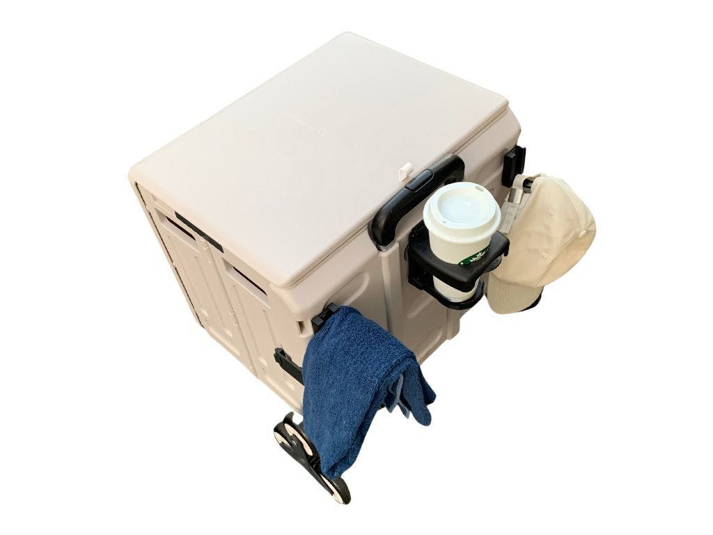 ドリンクホルダーとフックで手荷物を軽~くしてくれる。