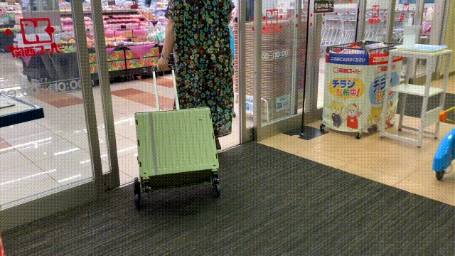 スーパーでの便利さ 私自身もスーパーでの買い物が非常に楽になりました。動画でも確認できますが、スーパーに入ると、クライムマスター8の上にマイカゴを置いて食品を入れ、レジに行きます。エコバッグや袋が不要で、そのままの状態で車に持っていけるのです。