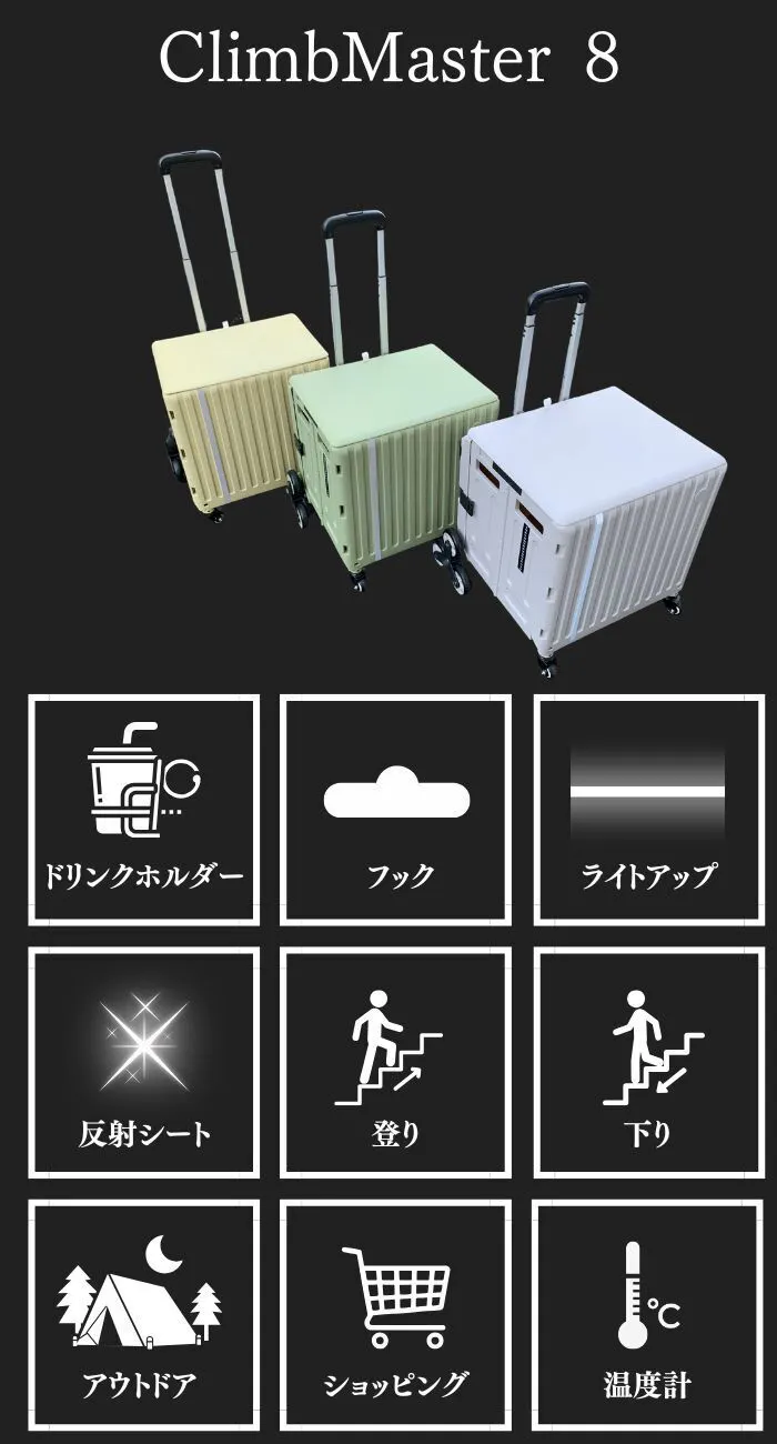 このような「荷物を大量に運ぶ際の辛さ」を解消するために、私たちは「クライムマスター8」を開発しました。