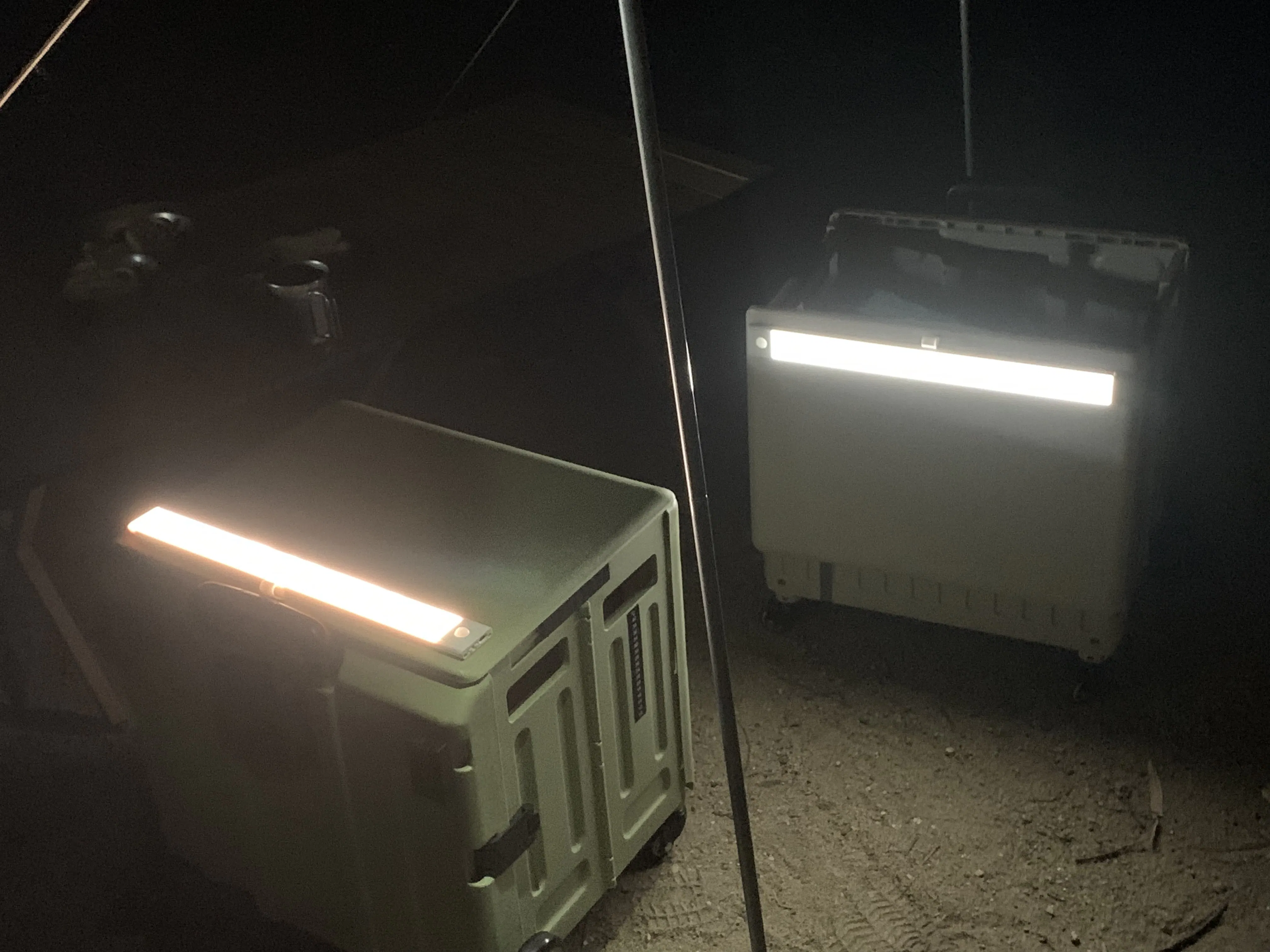 アウトドアでの活躍 さらに、アウトドアやバーベキューでも大活躍です。たくさんの荷物を運ぶのは当然ですが、暗くなった後にも役立つのがこの製品の大きな魅力です。バーベキューは日帰りが多く、片付けが遅くなることがあり、懐中電灯で忘れ物を探すことがよくあります。