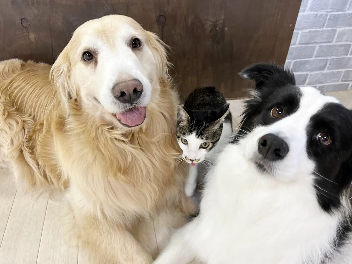 画像は看板犬に「猫も受け入れなよ」と言われているような感じがします。